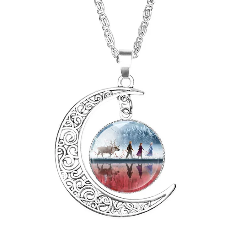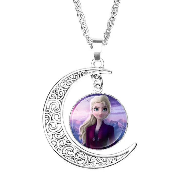 Модное ожерелье Disney Холодное сердце, классические аксессуары для кукол, серебристая цепочка, кулон в виде полой Луны, ожерелье, игрушки для девочек, принцесса Айша ана