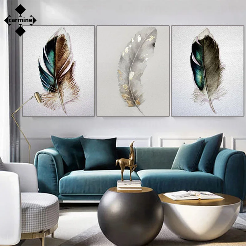 Картина на холсте с золотыми перьями, роскошная декоративная картина, скандинавский настенный плакат и печать, современные картины с принтом, домашний декор