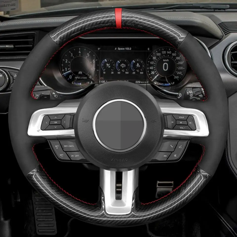 Рука сшитый черный PU углеродного волокна Черная замша чехол рулевого колеса автомобиля для Ford Mustang 2015 2016 2017 2018 2019 2020