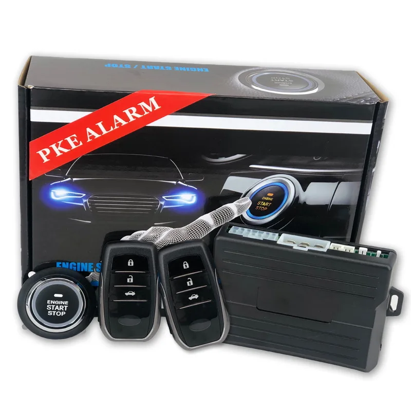 Это интеллектуальная Автомобильная сигнализация PKE (Пассивный вход без ключа) с дистанционным запуском двигателя и функцией пуска кнопки. Это универсальная версия и подходит для автомобилей с автоматической передачей или ручных передач.