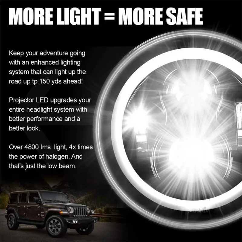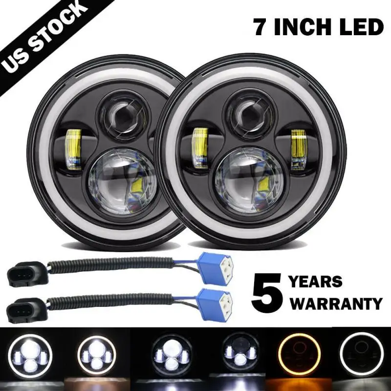 7-дюймовая Автомобильная фара 150 Вт, светодиодные фары DRL, глаза ангела для Davidson, Honda, Yamaha, Jeep, мотоциклетный поворотный сигнал, ходовые огни