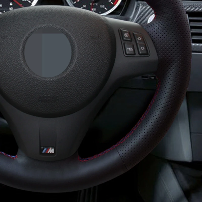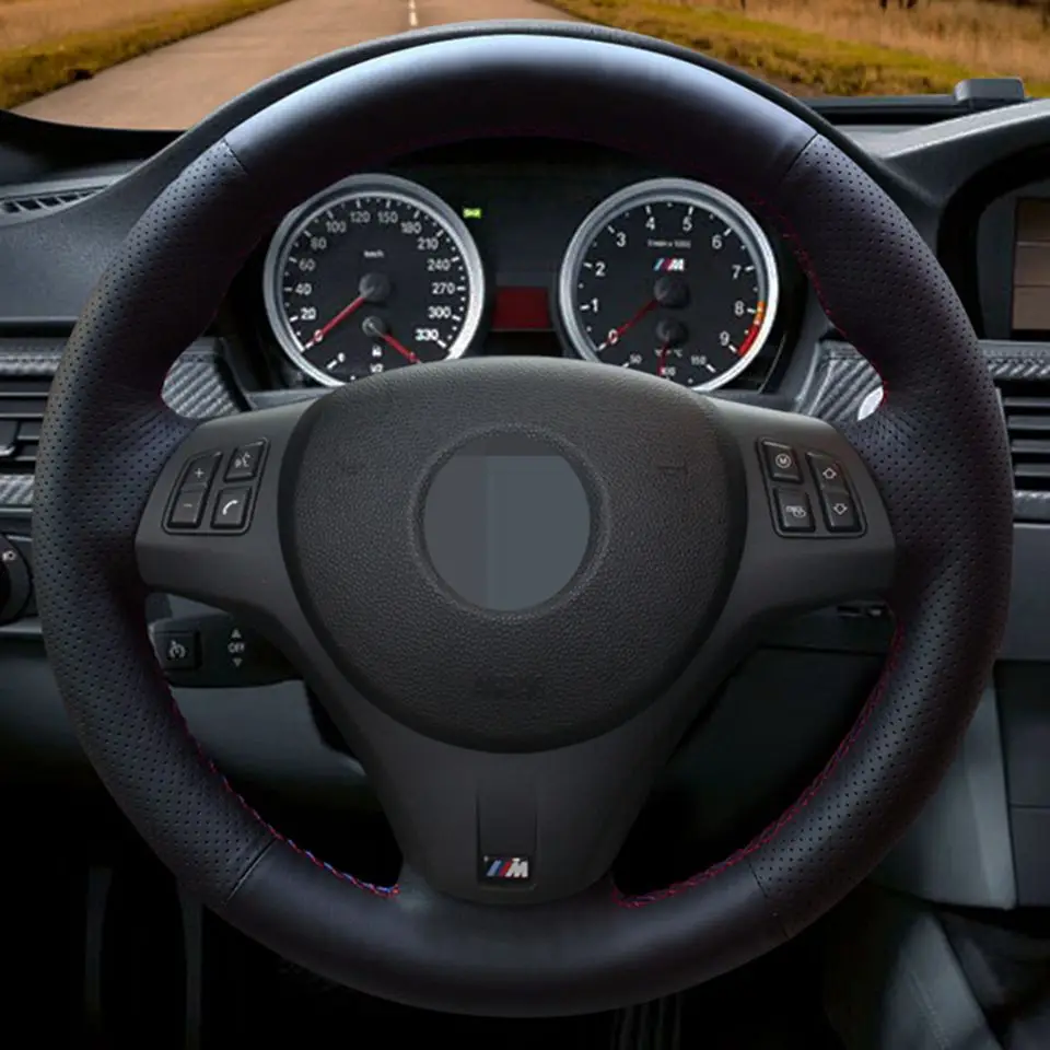 Чехол рулевого колеса автомобиля ручной работы из натуральной кожи, черного цвета для BMW M спортивные M3 E90 E91 E92 E93 E87 E81 E82 E88 X1 E84