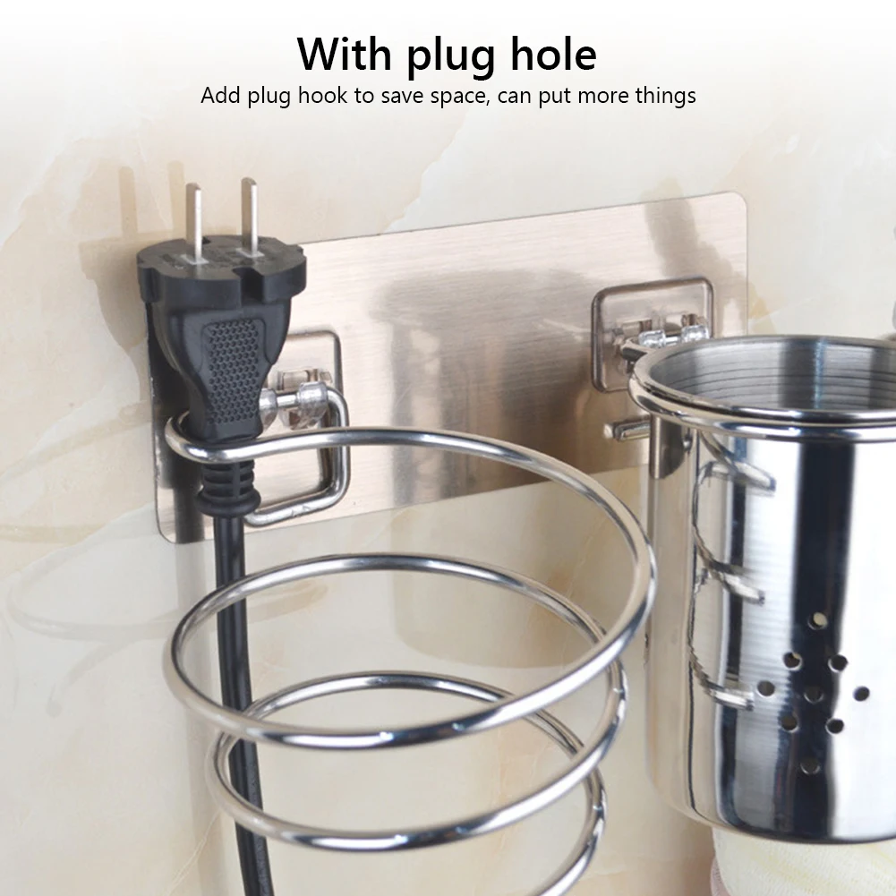 Держатель для фена, органайзер, клейкий, настенный, без сверления, подставка на спирали из нержавеющей стали для ванной комнаты