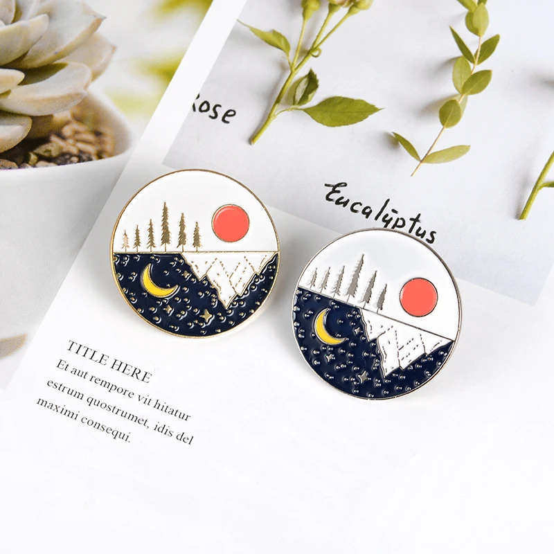 Harajuku натуральный шпильки пейзаж обратный днем и ночью, изображе...