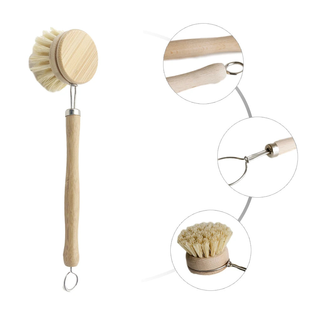 Бамбуковая щетка для посуды, натуральная деревянная ручка, длинная щетка для мытья посуды, сменные биоразлагаемые кухонные щетки 2021