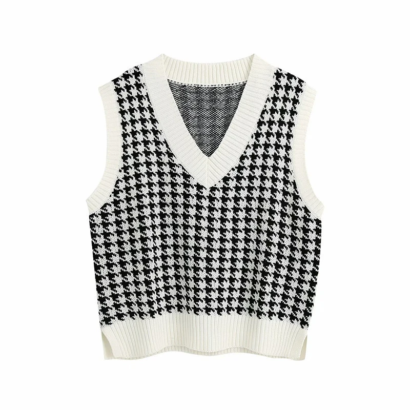 Женский свитер-жилет, свободный крой, с V-образным вырезом, без рукавов, с принтом в клетку, 2021