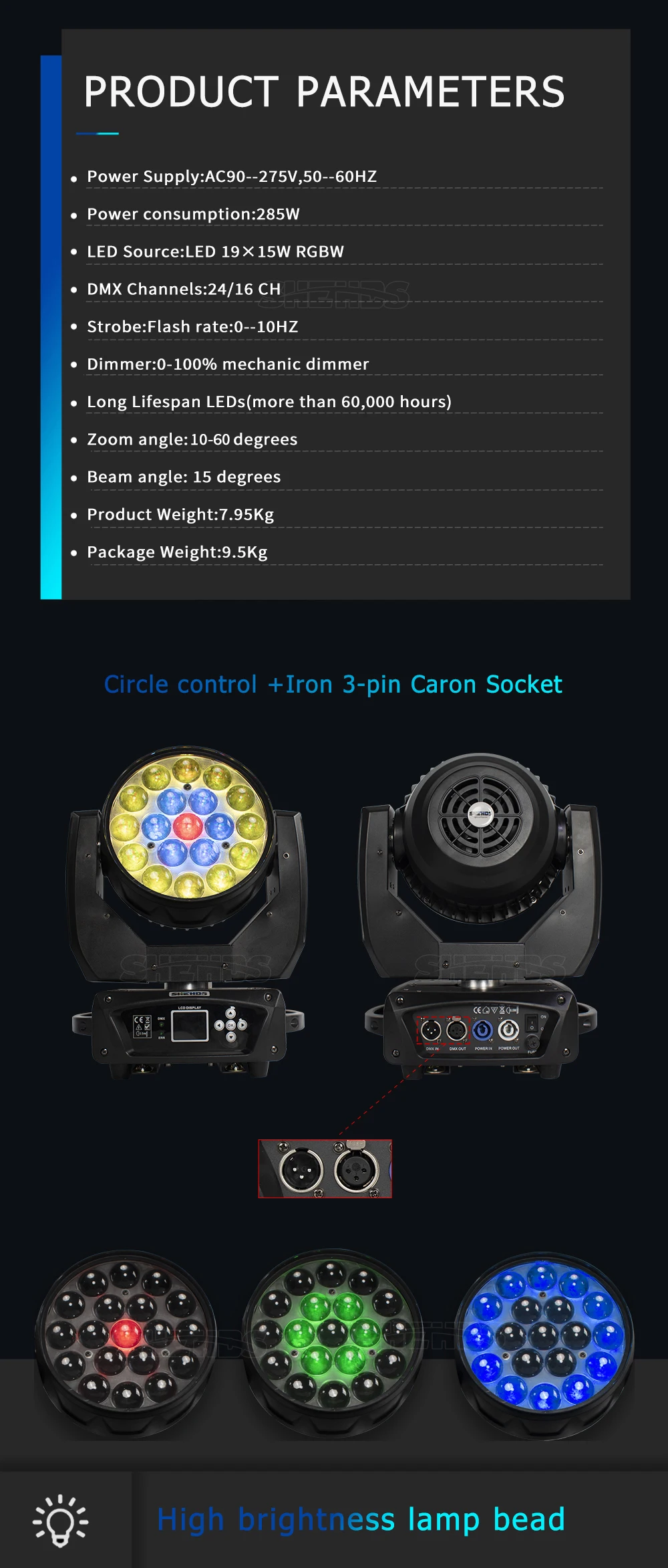 Луч RGBW с моющим зумом, сценисветильник светильник с движущейся головкой, оборудование для концертов, профессиональных свадеб, 124 шт., 19x15 Вт