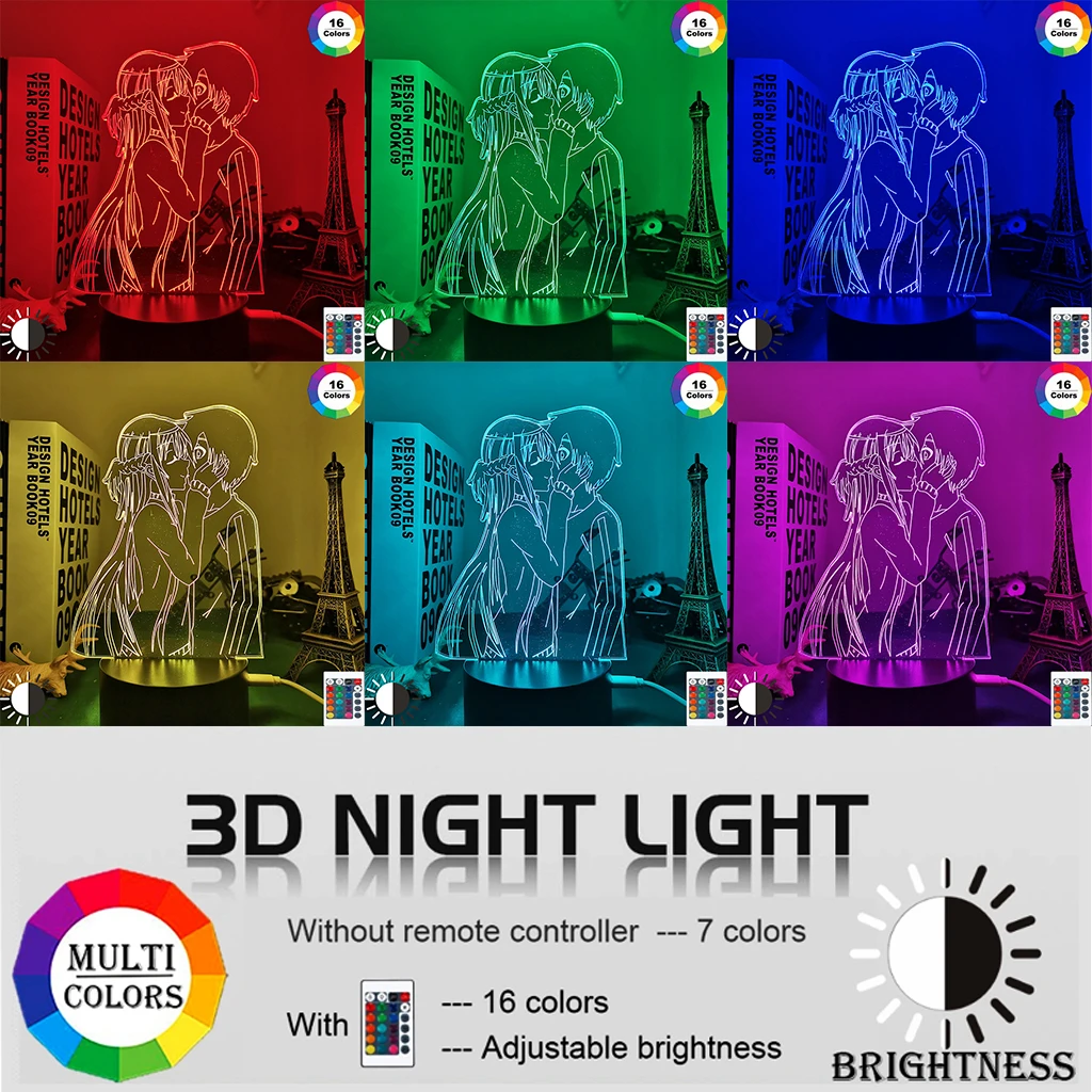 3d Аниме лампа меч искусство онлайн для спальни Декор прикроватный ночник Подарки на день рождения для женщин мужчин Konosuba манга светодиодный ночсветильник