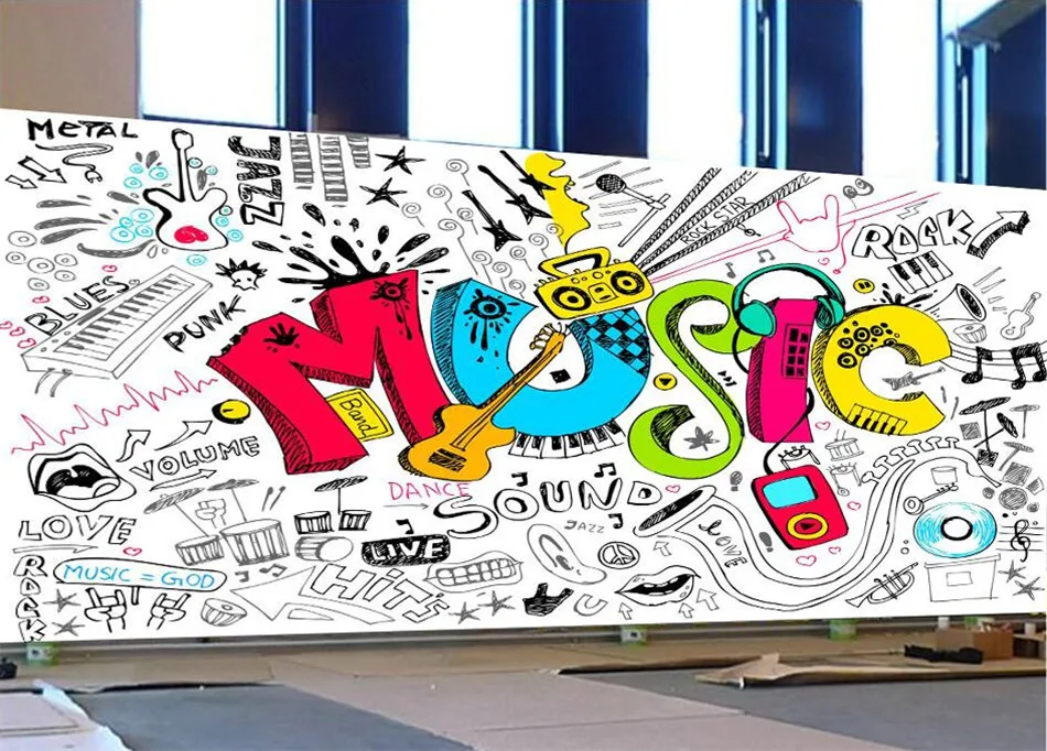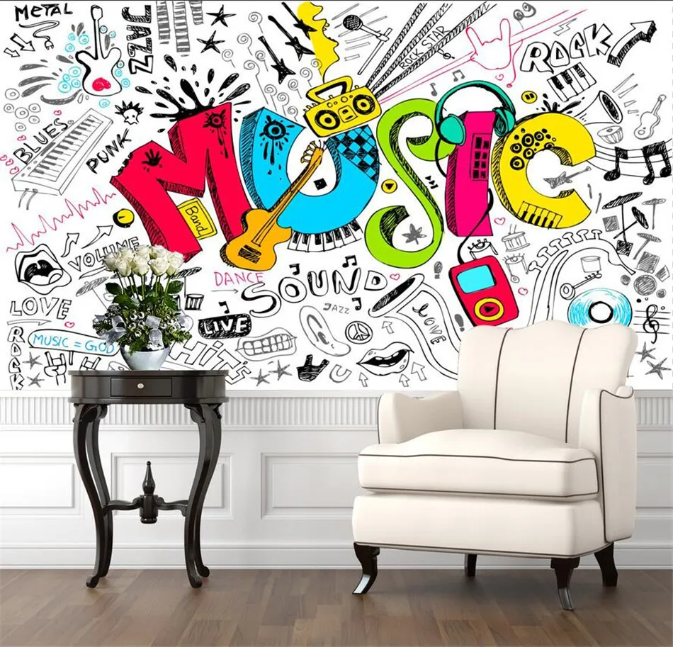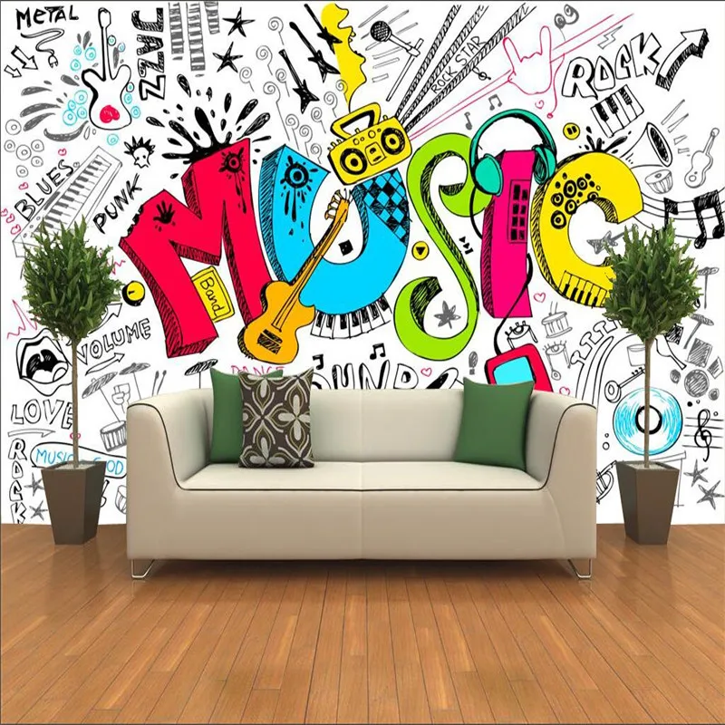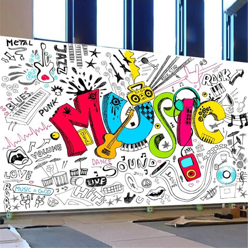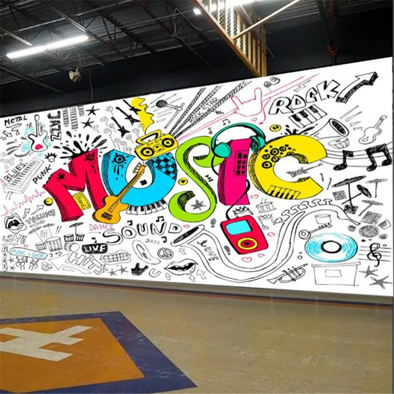 Пользовательские граффити музыкальная тема настенная бумага 3D бар КТВ клуб ресторан росписи рок студия Декор настенная бумага Papel де Parede 3d