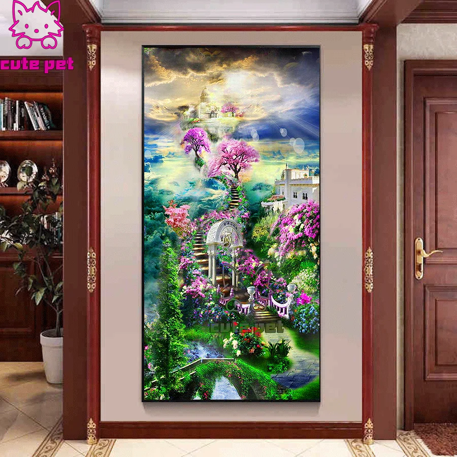 Картина из страз "сделай сам", квадратная Круглая Мозаика из страз с изображением европейского неба, сада, украшение-пазл