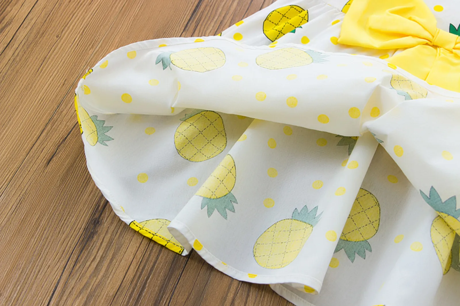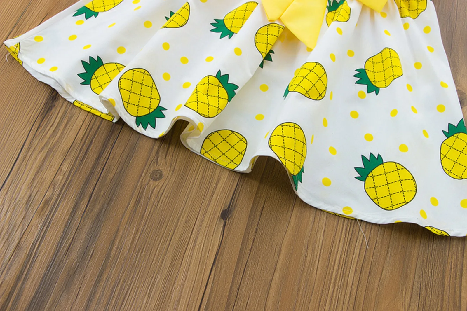 Повседневное платье с бантом и принтом ананаса для маленьких девочек; Вечерние платья принцессы