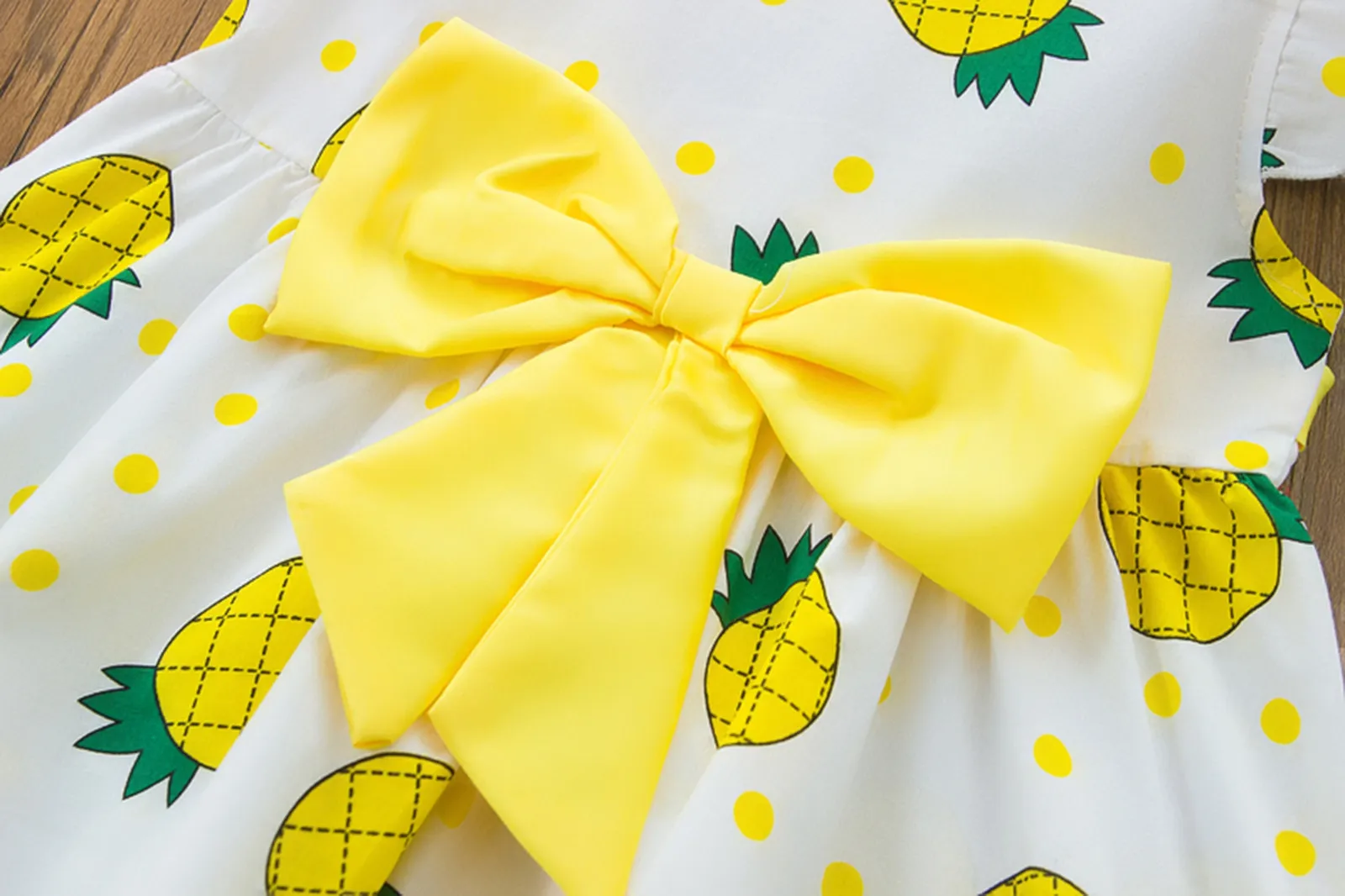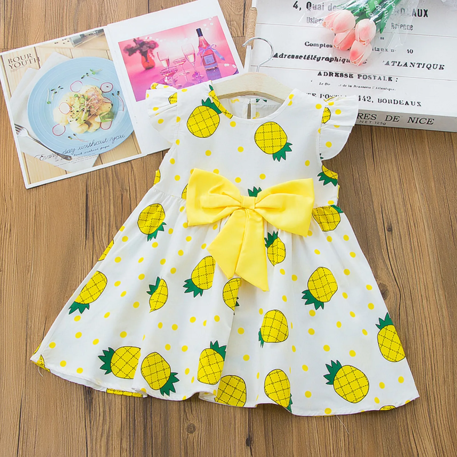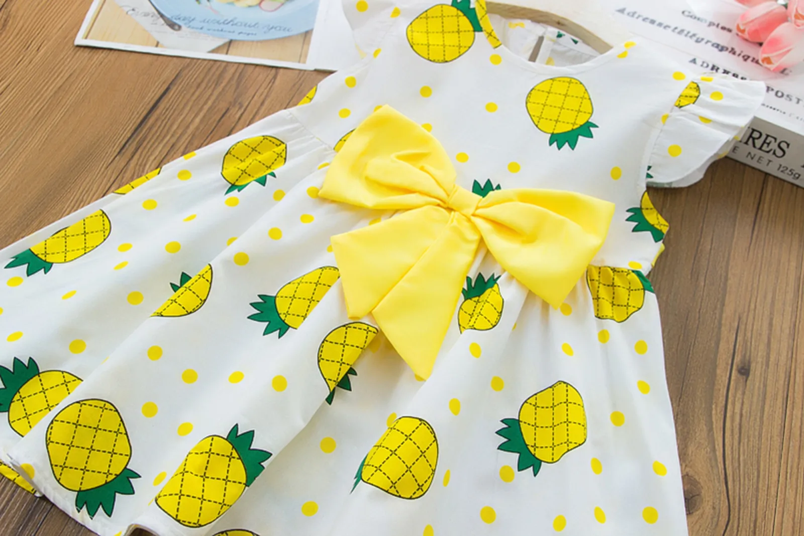 Новинка 2022, Модное детское платье, Повседневное платье для маленьких девочек с бантом и принтом ананасов, вечернее летнее платье принцессы, детская одежда