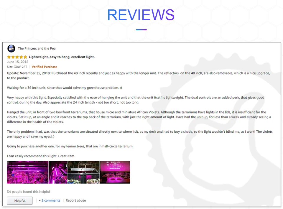 Светильник для выращивания имеет две трубки, которые ярче, чем аналогичный светильник для выращивания на рынке.