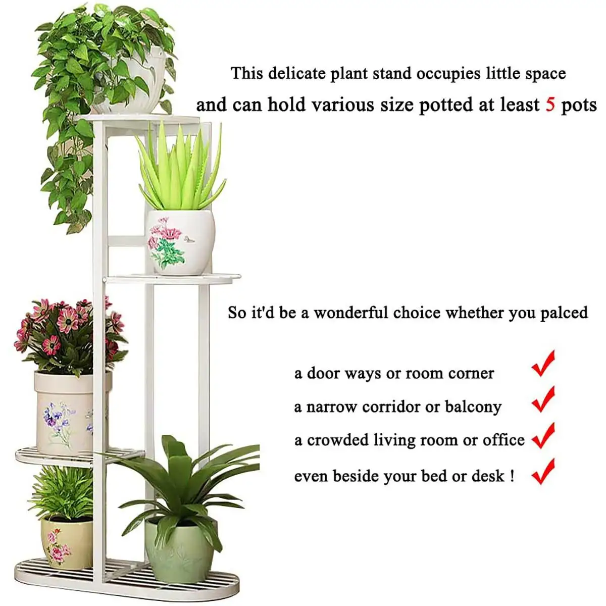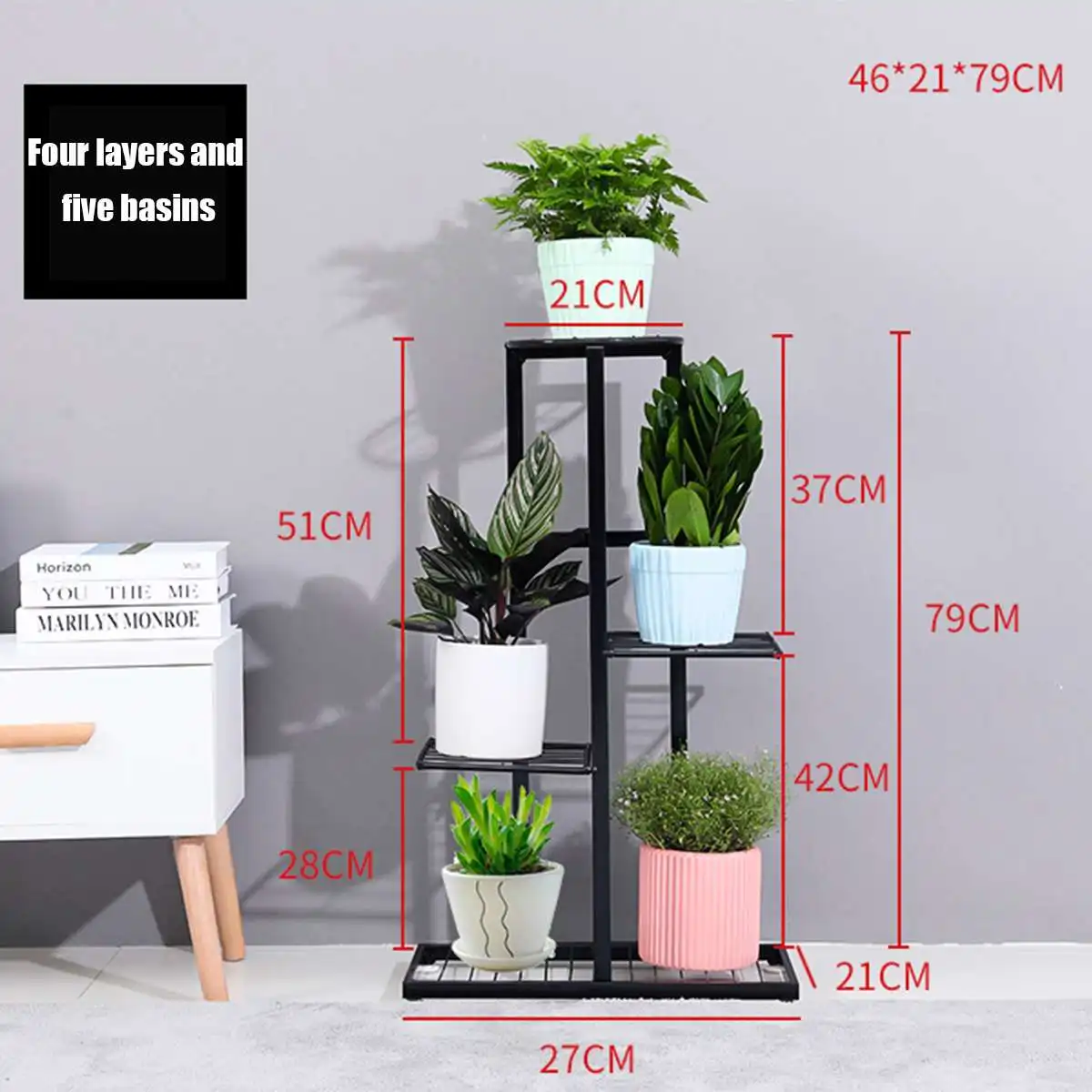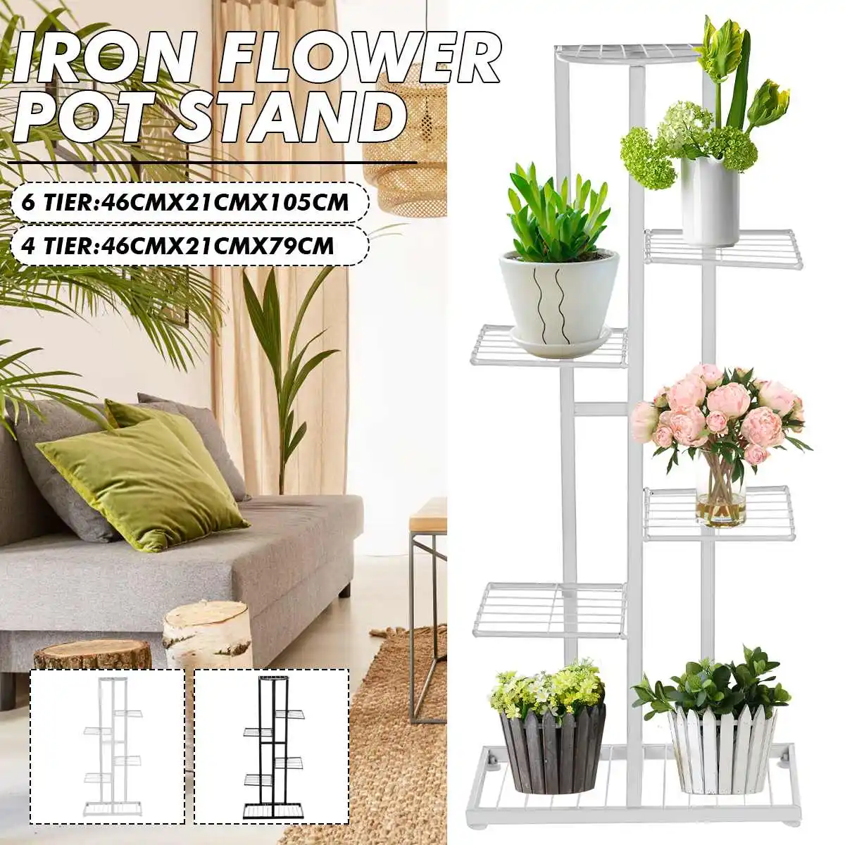 Спецификация:-- Название продукта: Подставка для горшка с железным цветком-- Материал: железо-- Костюмы: в помещении/на открытом воздухе-- Размер:6 ярусов: 46 см x 21 см x 105 см/18.1inx8.3inx41.3in4 уровня: 46 см x 21 см x 79 см/18.1inx8.3inx31.1in-Цвет: черный/белый