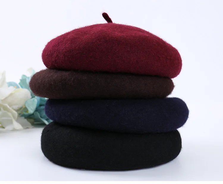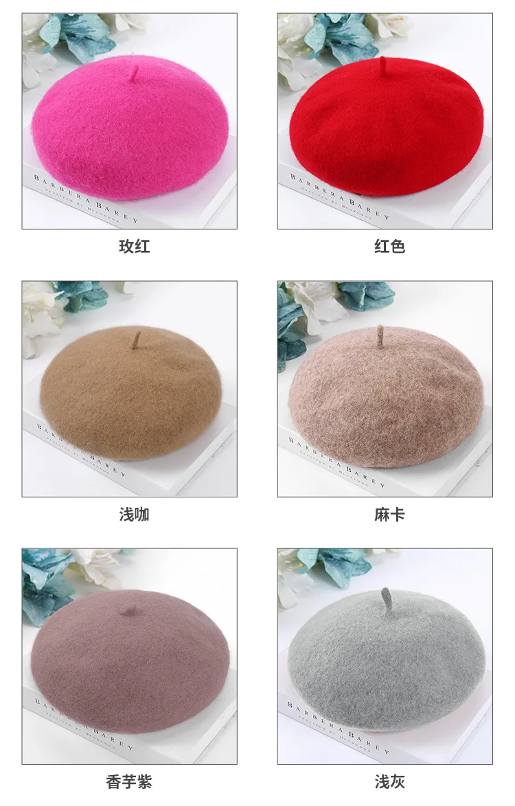 Берет во французском стиле для женщин, демисезонный Зимний берет для улицы, простая шапка в уличном стиле, шерстяная теплая Женская Шапка-бини для девушек, шапки