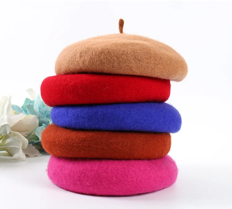 Берет шерстяной для девочек и взрослых, ярких цветов, регулируемый ...