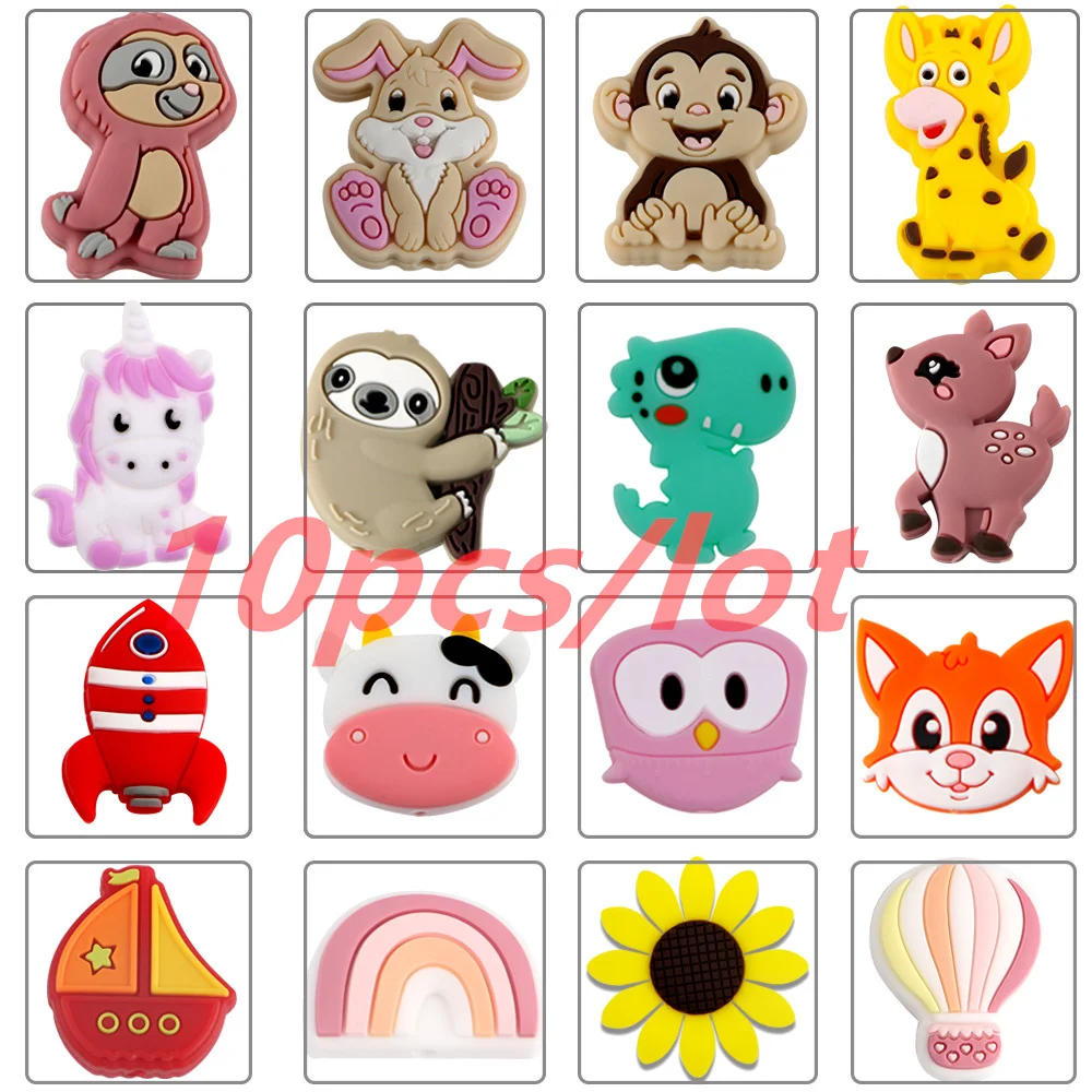 10 шт., силиконовые бусины-слоны для прорезывания зубов