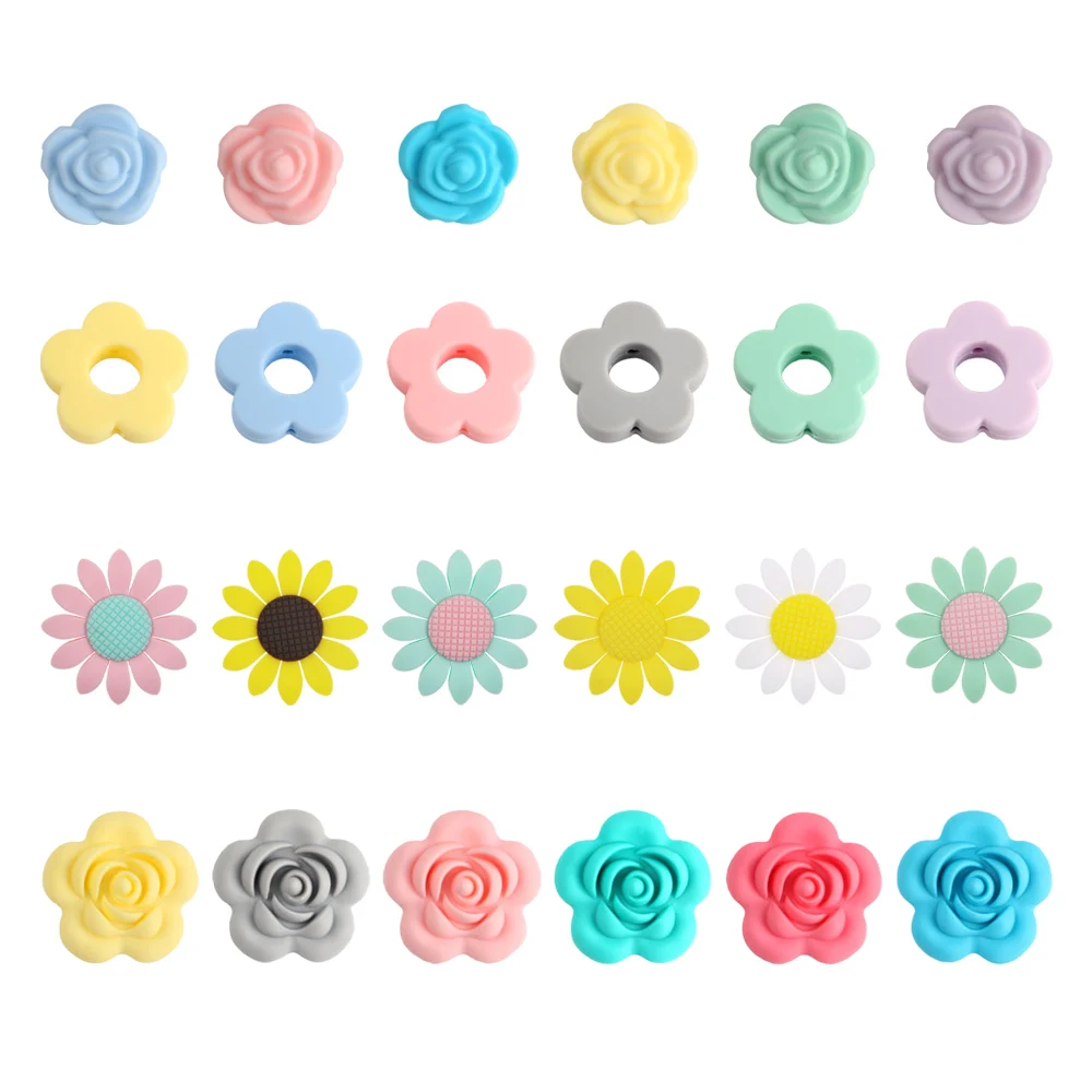 10 шт., силиконовые бусины для прорезывания зубов, в форме цветка