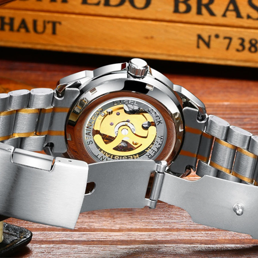 Часы-скелетоны Мужские механические, Роскошные водонепроницаемые золотистые наручные, с автоматическим заводом, из нержавеющей стали