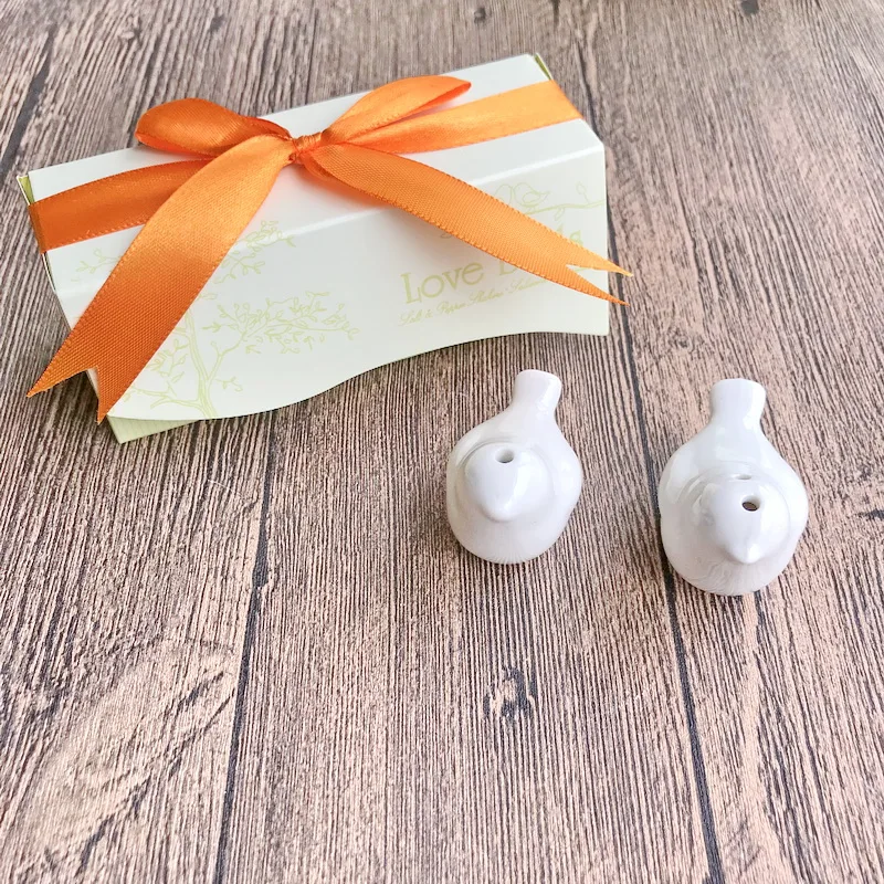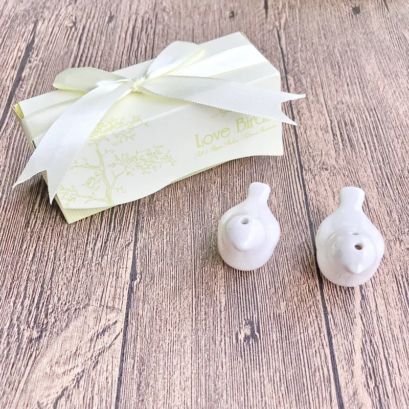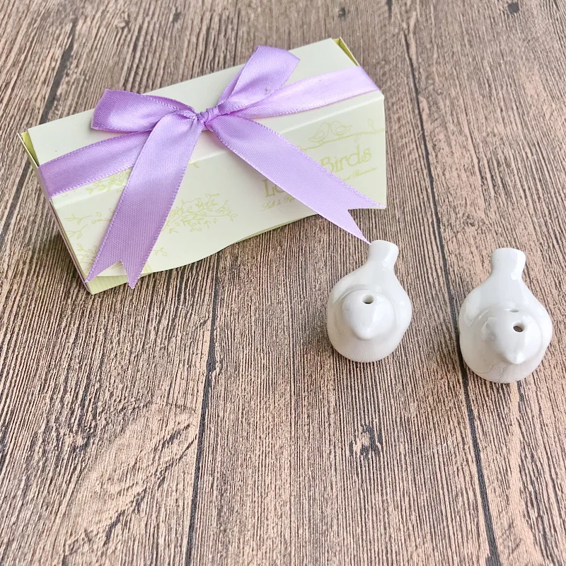 1 комплект X Любови птицы в окне Керамика нержавеющой для шлифования соли перца с Цвет ленты Свадебная свадебный душ сувениры