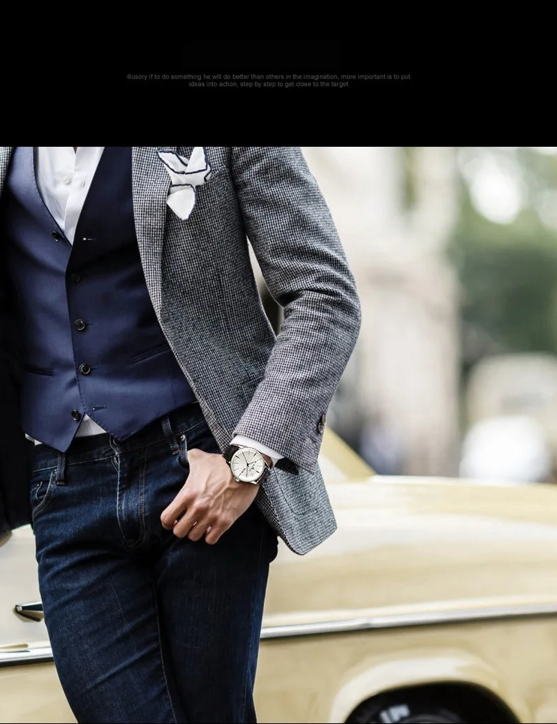 Мужские стальные автоматические часы и кожаные ремни с синим циферб...