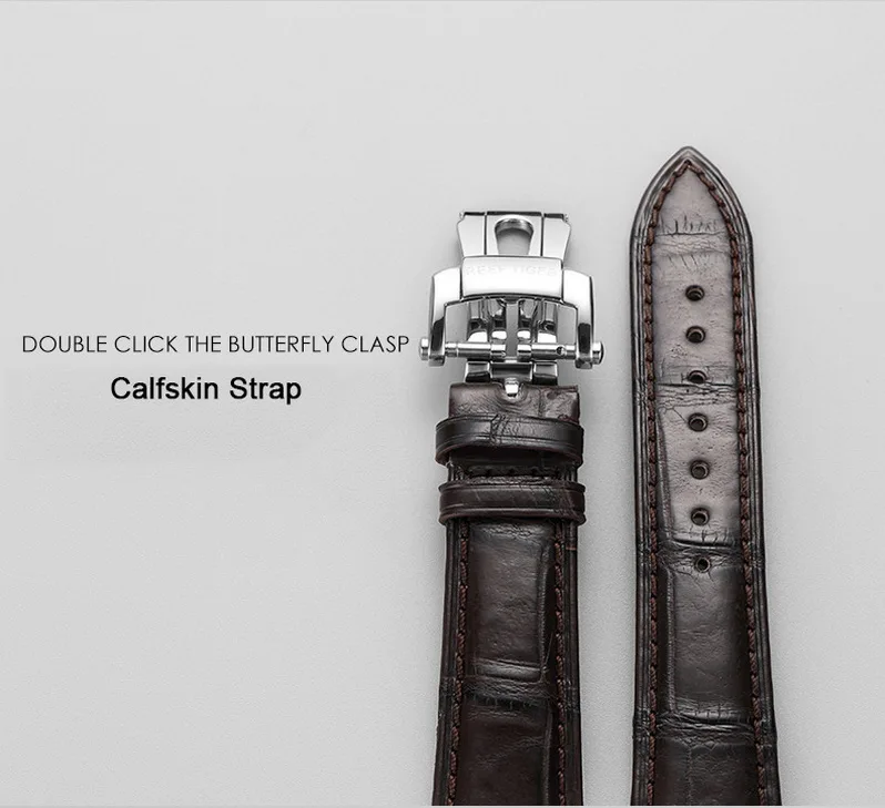 Часы мужские с автоподзаводом, водонепроницаемые швейцарские механические с сапфировым ремешком и кожаным ремешком