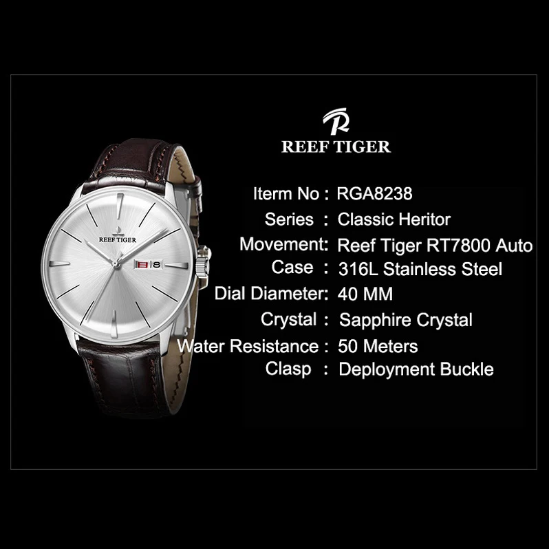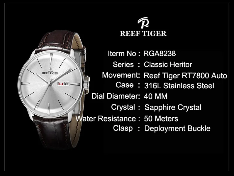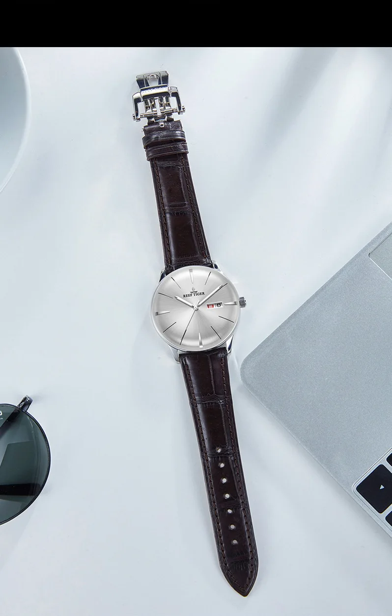 Мужские автоматические часы с ремешком из натуральной кожи, RGA8239