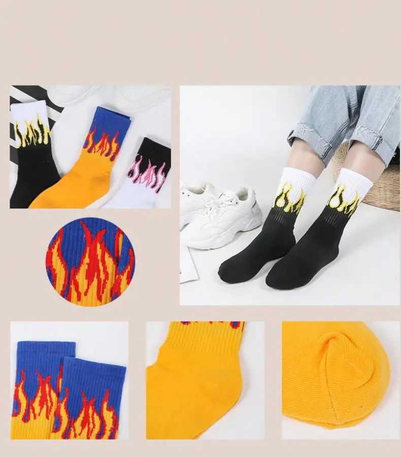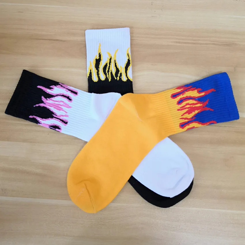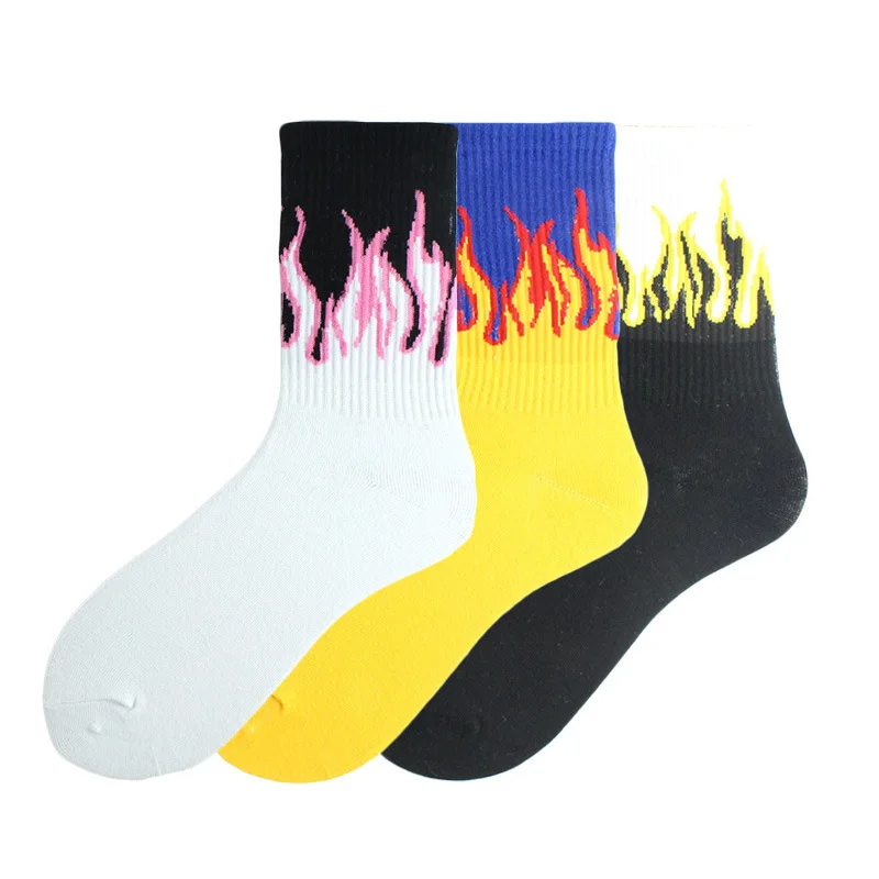 Носки мужские хлопковые в стиле Харадзюку, цветные с рисунком пламе...