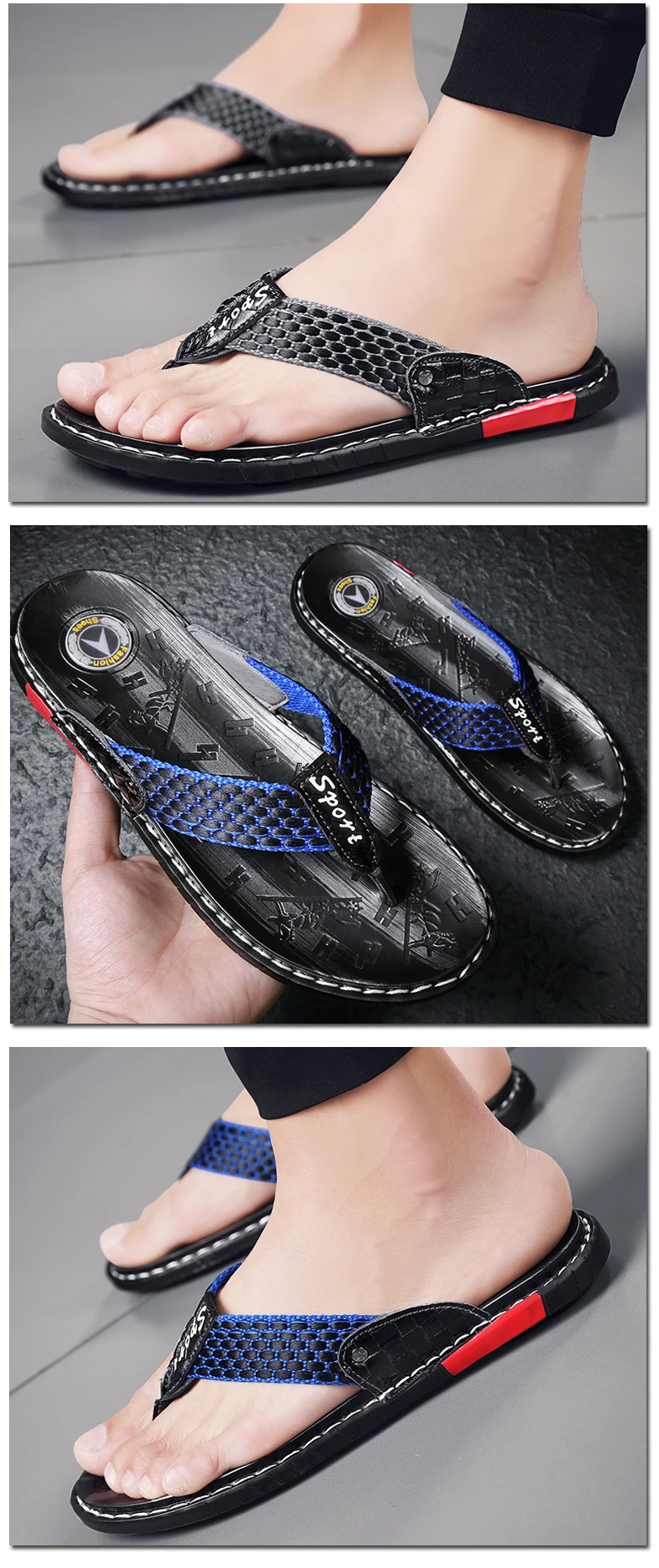 Шлепанцы мужские из натуральной кожи, повседневные пляжные сандалии...