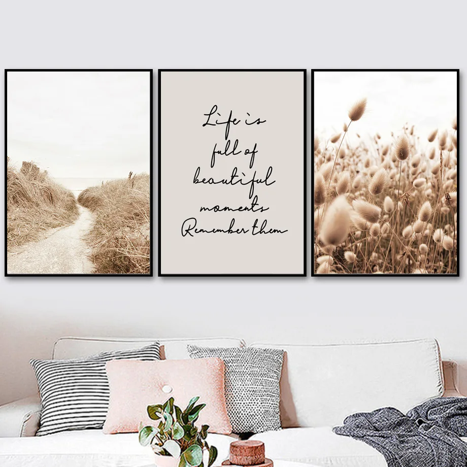 Бежевая тростниковая линия, художественный постер, искусство на сте...