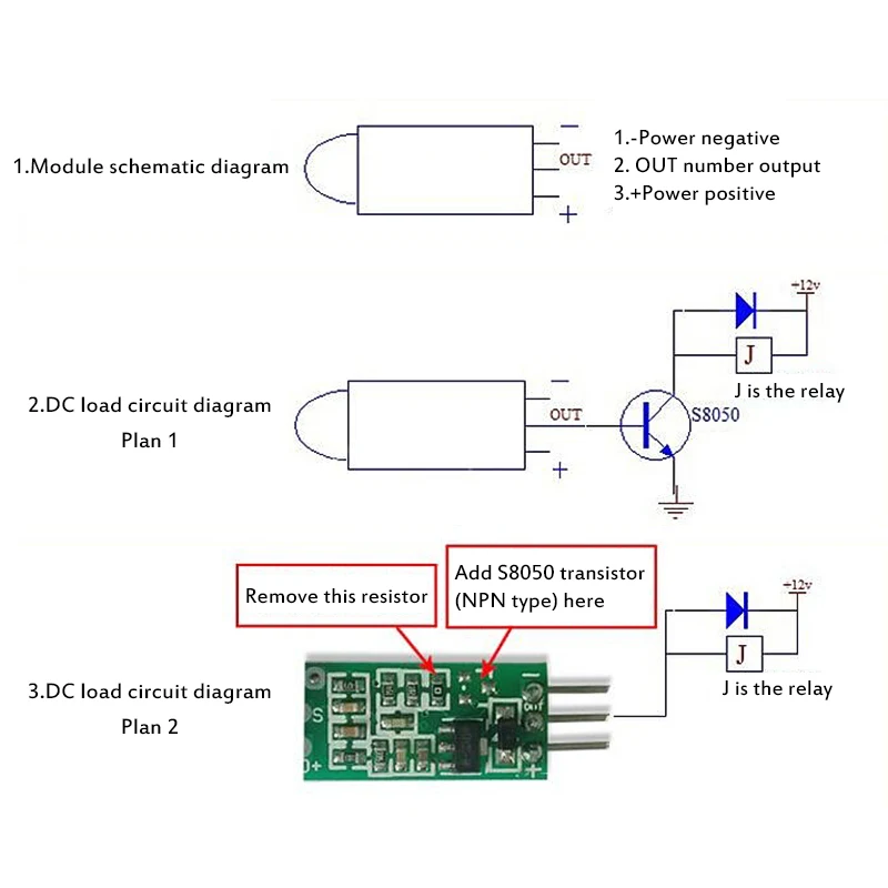 -Автоматическая индукция: для того, чтобы войти в зону срабатывания выхода высока, люди выходят из зоны действия датчика, автоматически задерживают высокий, выход низкий. Ультрамаленький размер. Повторяемый триггер: выход датчика высокий, период задержки, если в его диапазоне срабатывания есть активность человека, выход будет оставаться высоким до тех пор, пока люди не уйдут после низкого значения переменной задержки (автоматически Расширенный модуль датчика обнаруживает человеческое тело после каждого периода задержки, И последний раз событие является отправной точкой времени задержки).