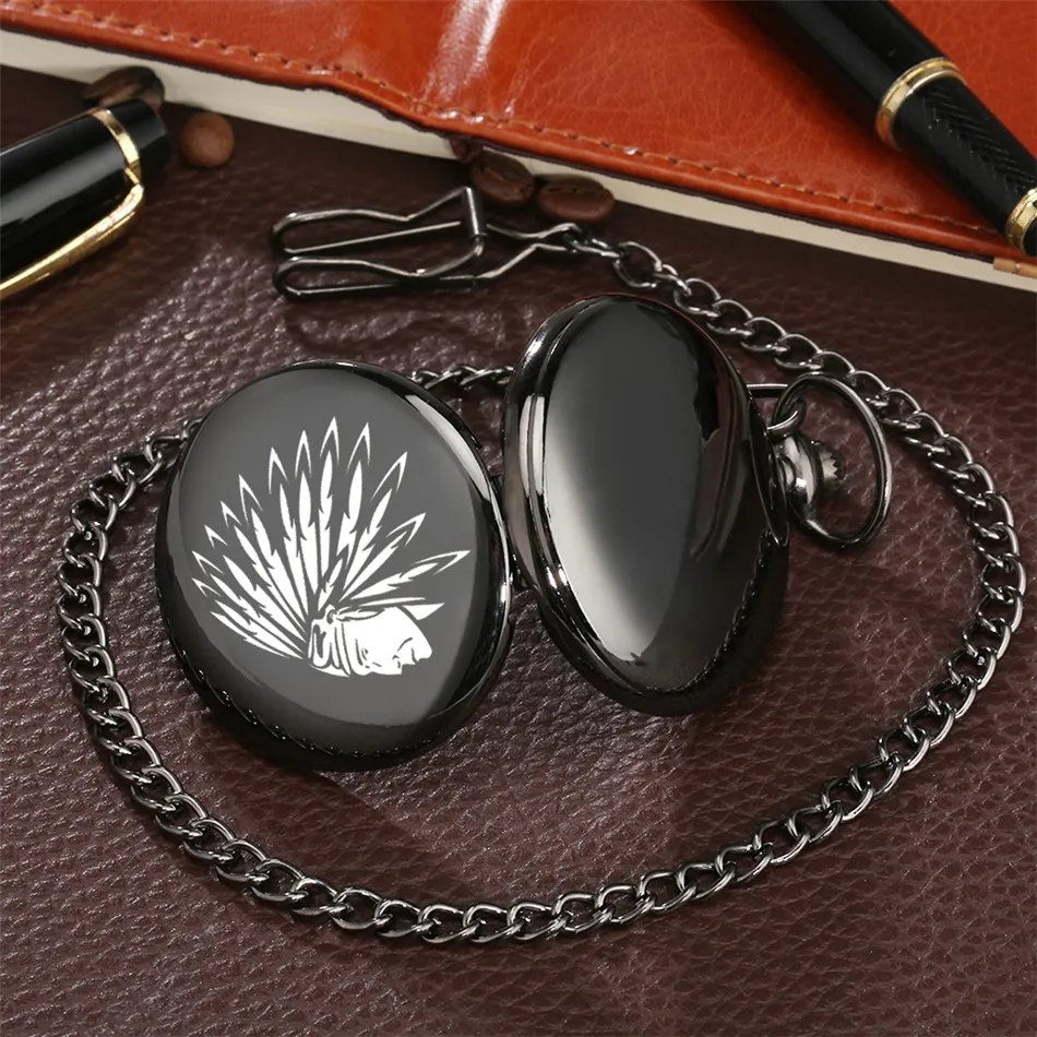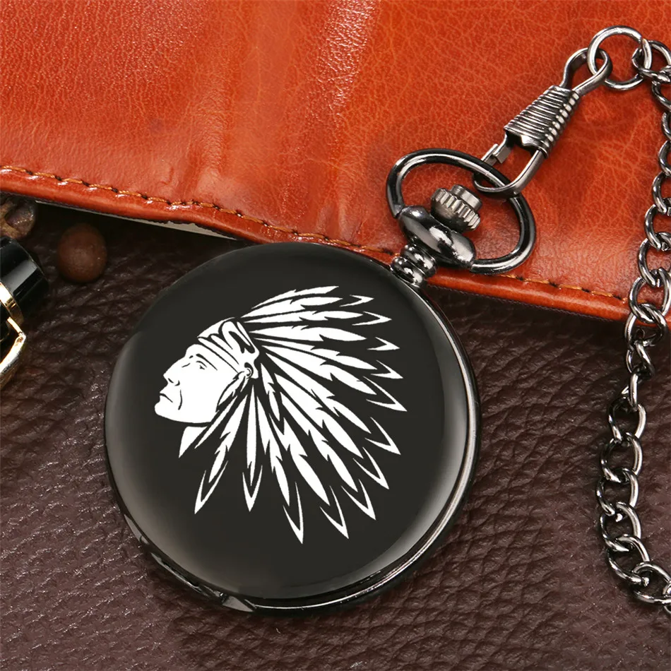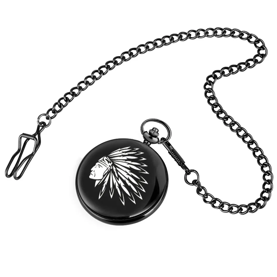 Часы карманные мужскиеженские, черные, с принтом вождя племени