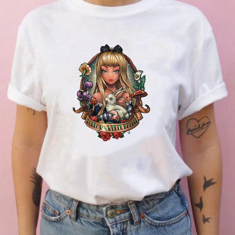 Футболка женская в стиле Харадзюку, милая рубашка с принтом Алиса в...