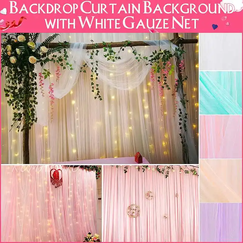 Фоны из ледяного шелка для свадебной вечеринки, драпировка, марля, 2 х2 м, занавеска, фоновое украшение, белая ткань, марлевая сетка, панели для свадебной фотобудки