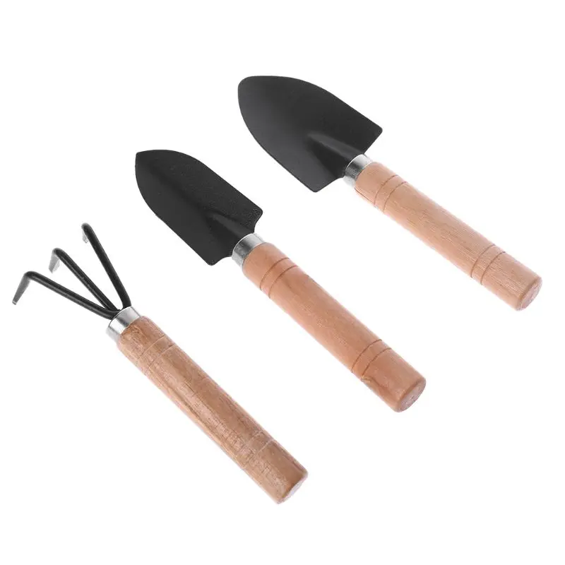 Комплект из 3 предметов, для украшения сада, совок грабли Лопата Erramientas бонсай Набор инструментов с деревянной ручкой для цветы комнатные растения