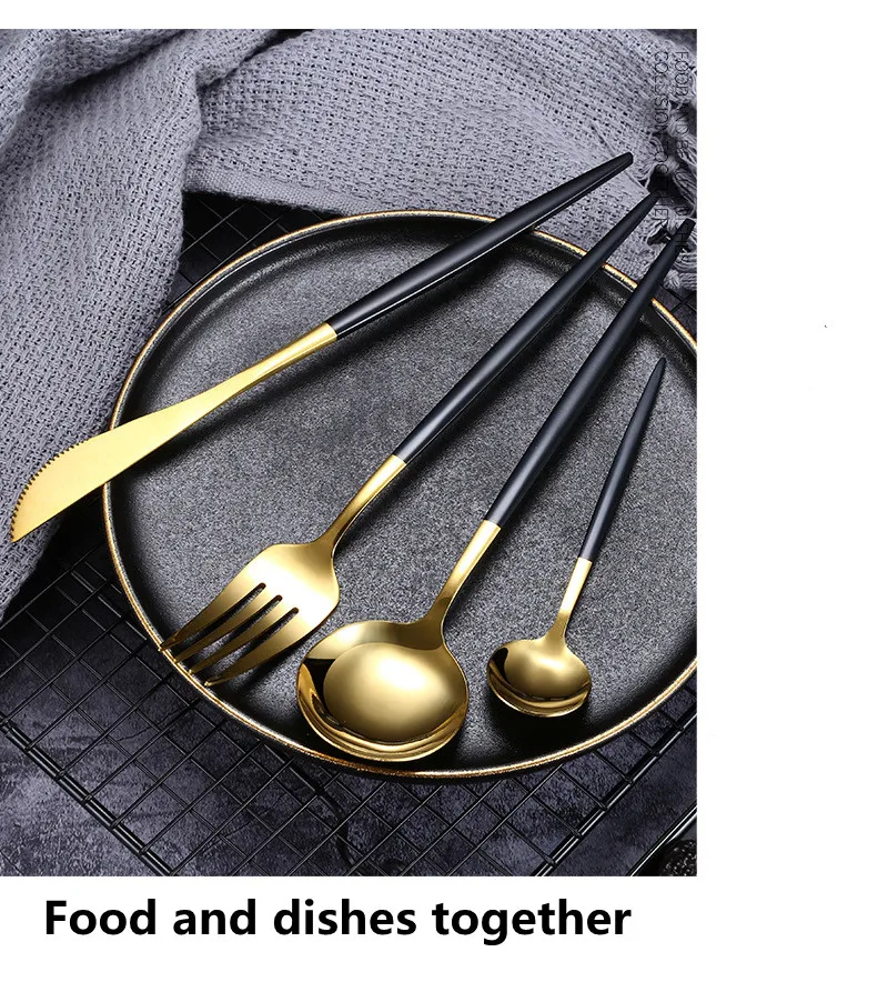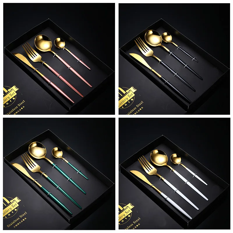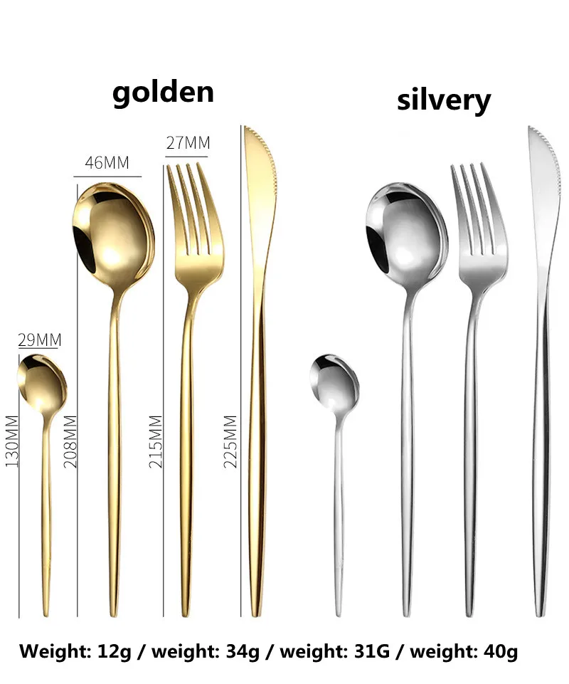 Набор золотых столовых приборов, комплект из 4 приборов, вилок, ложек, ножей, столовых приборов из нержавеющей стали, ложка, нож, вилка