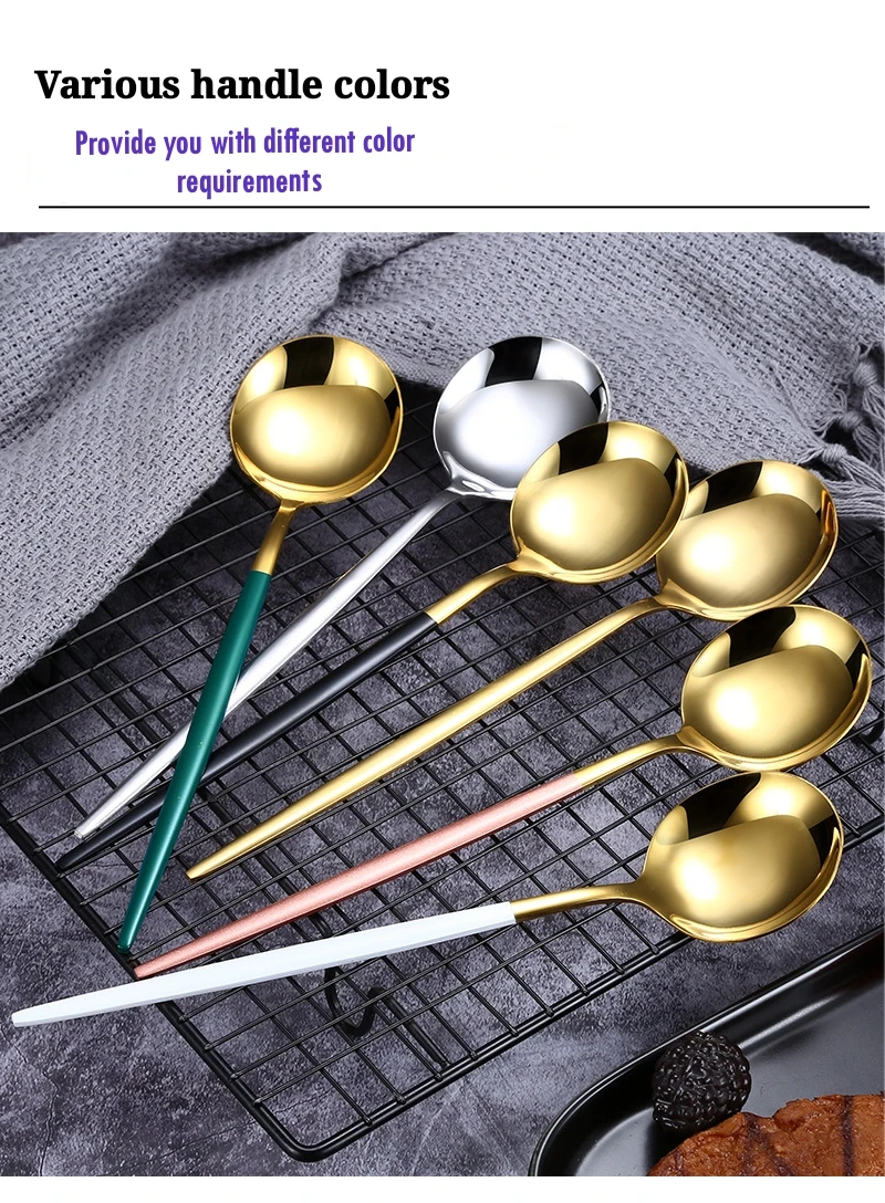 Набор столовых приборов с круглой ручкой, набор золотистых столовых...