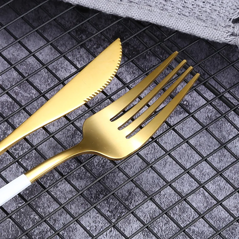 Матовое золото Нержавеющаясталь покрытая Золотой столовые приборы К...