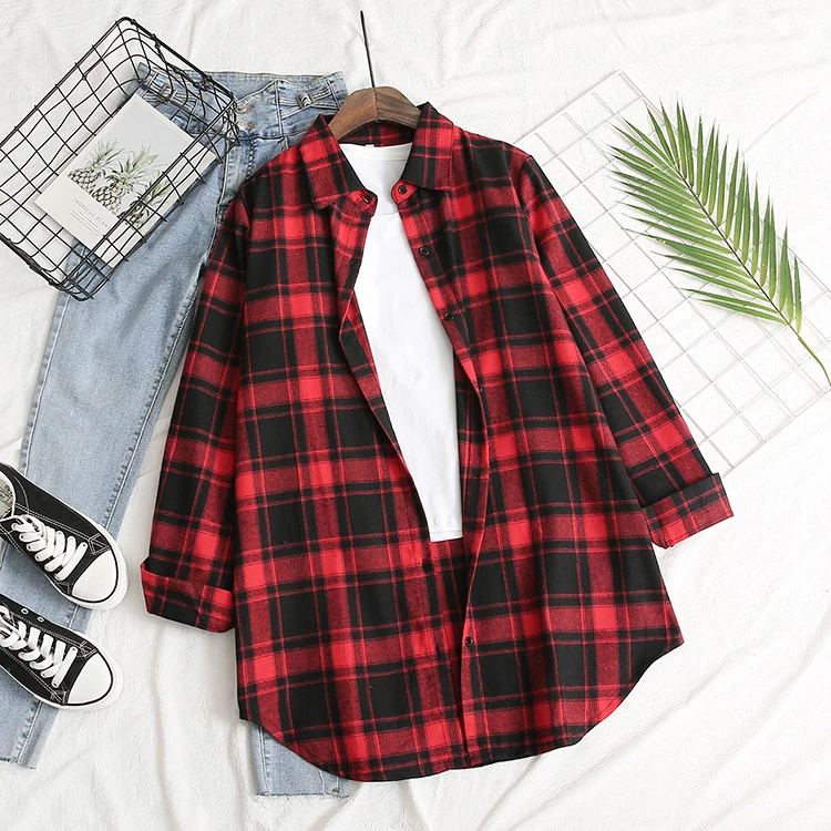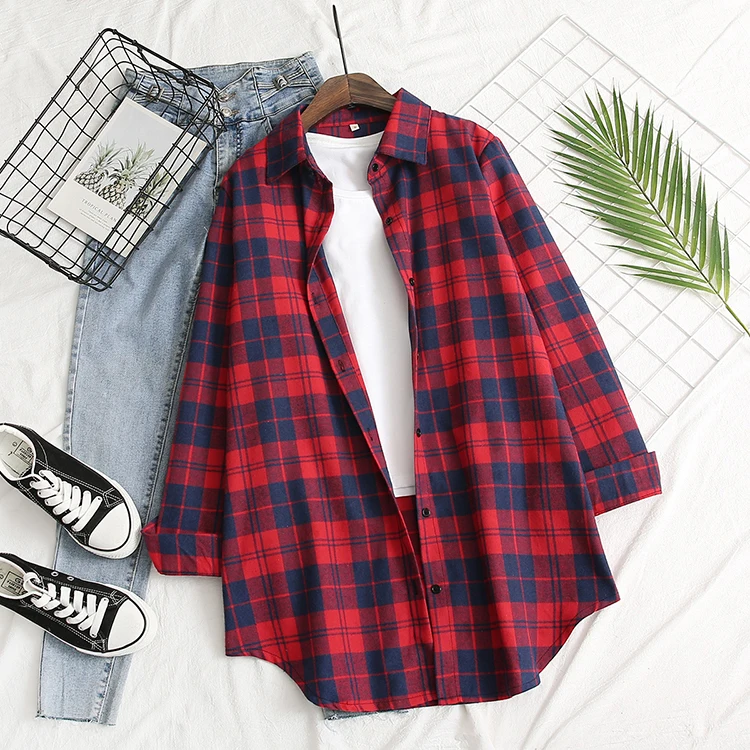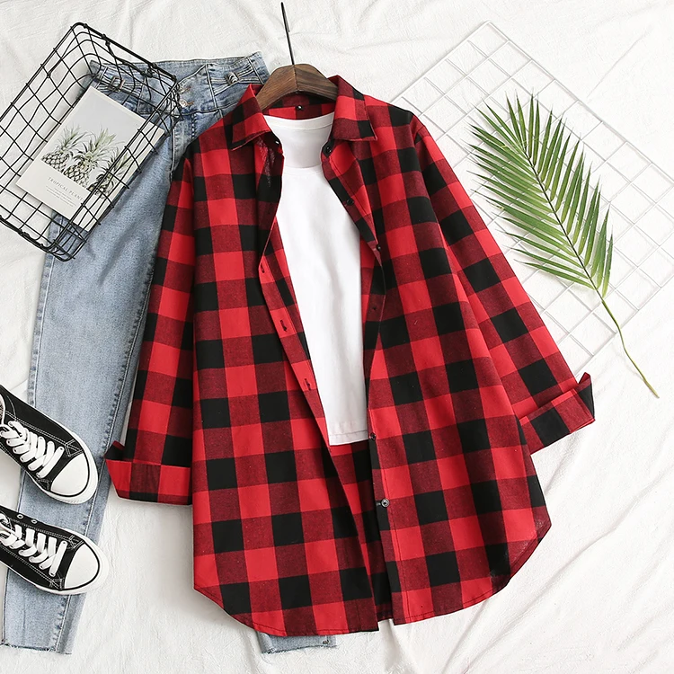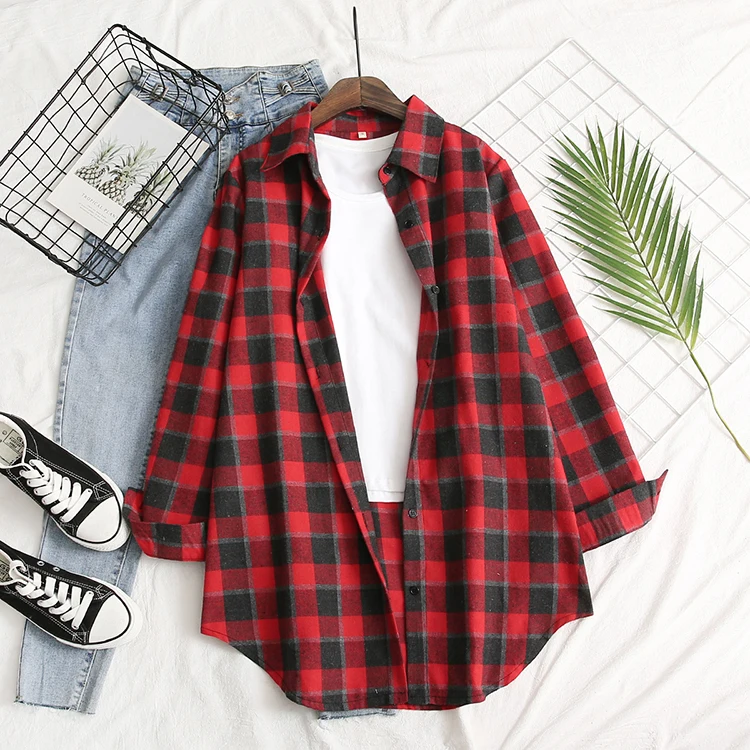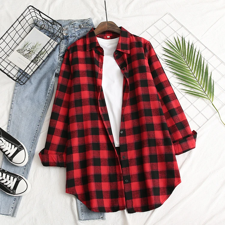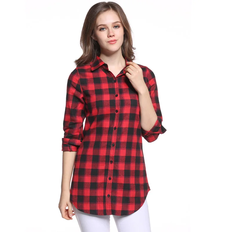 Блузка, классическая красная клетчатая блузка, с отложным воротником и длинными рукавами, однобортная блузка, горячая распродажа