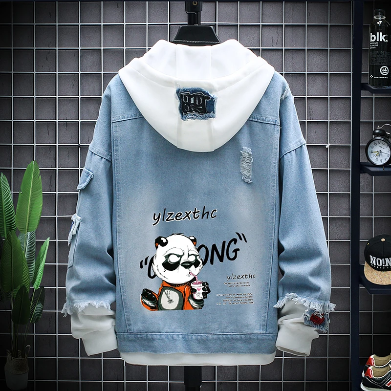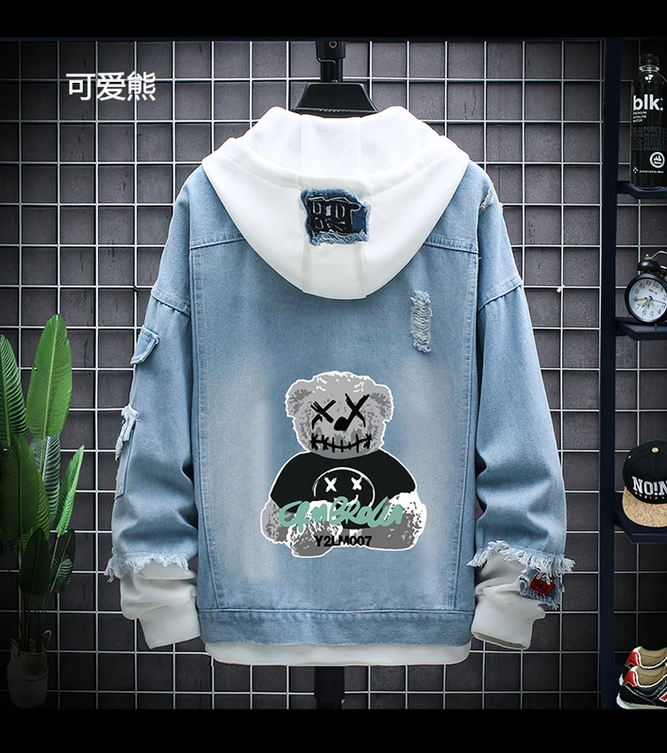 Куртка мужская джинсовая с капюшоном, уличная одежда в стиле хип-хоп, Повседневная Свободная облегающая верхняя одежда, 2022