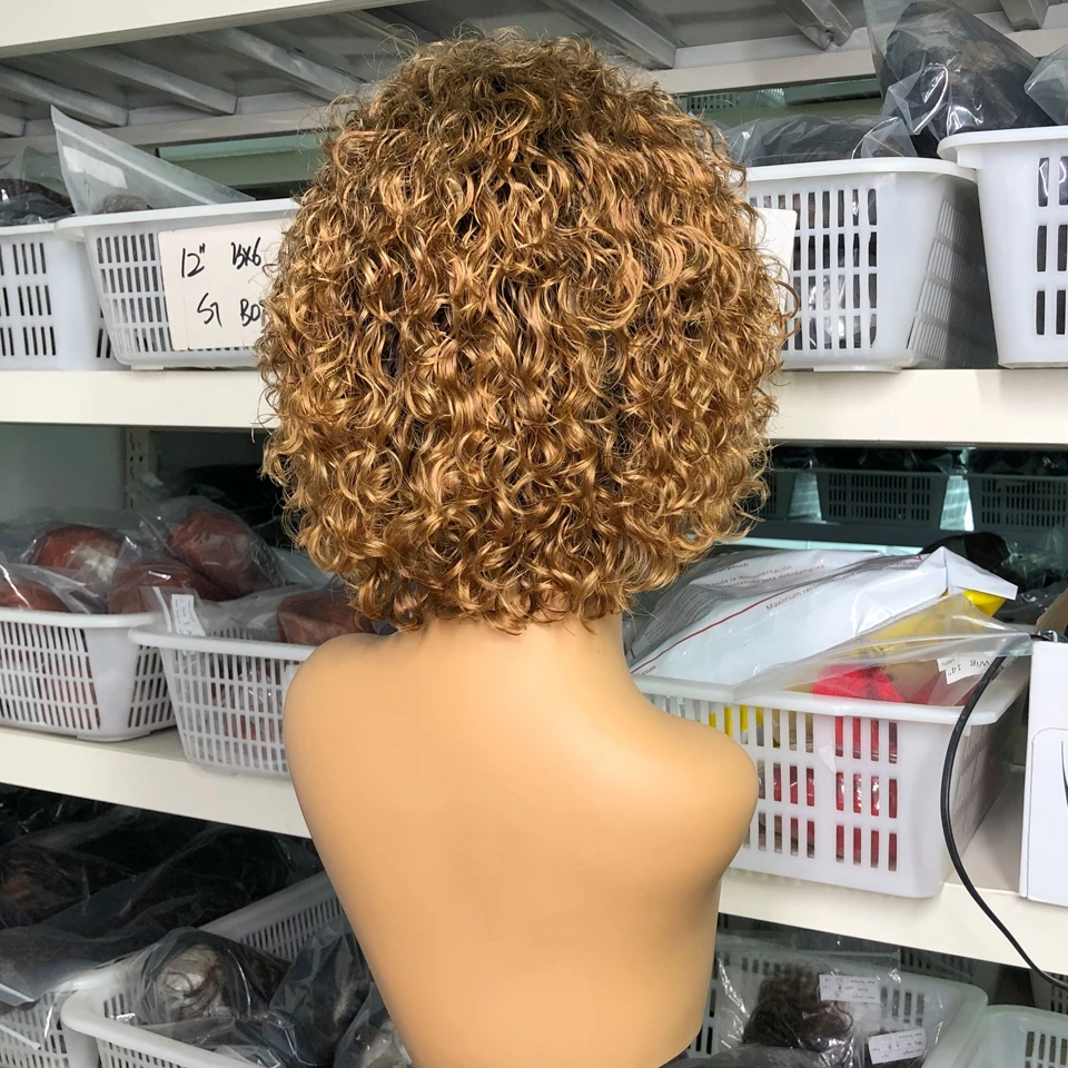 Медовый блонд, парик, обрезанный Пикси, прелестный, Омбре, Боб, кружевная часть, парики, Т-образная часть, кудрявые человеческие волосы, парики Пикси для черных женщин
