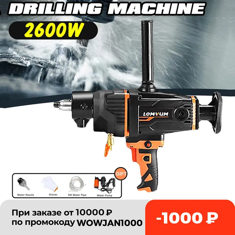 Ручной вертикальный сверлильный станок с алмазным сердечником, 2600 Вт, 280 мм, сверлильный станок для бетона, водяного бурения с водяным насосом