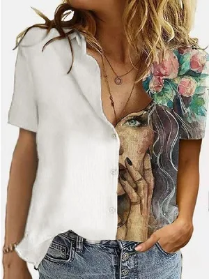 Женская блузка с отложным воротником и пуговицами, Повседневная блу...
