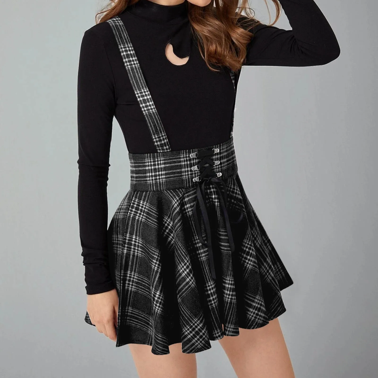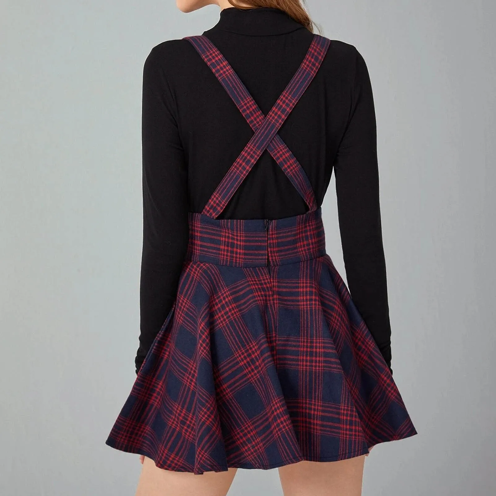 Женское винтажное платье-трапеция, плиссированное платье с принтом в клетку, с открытыми плечами и перекрестными лямками, 40 #