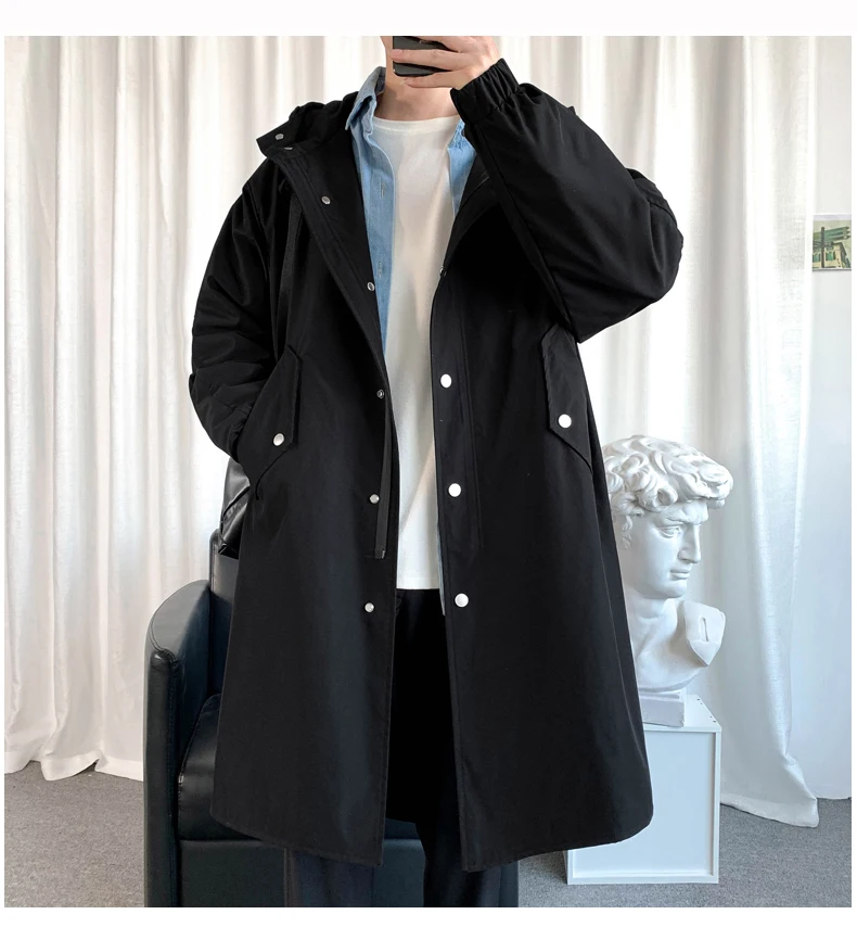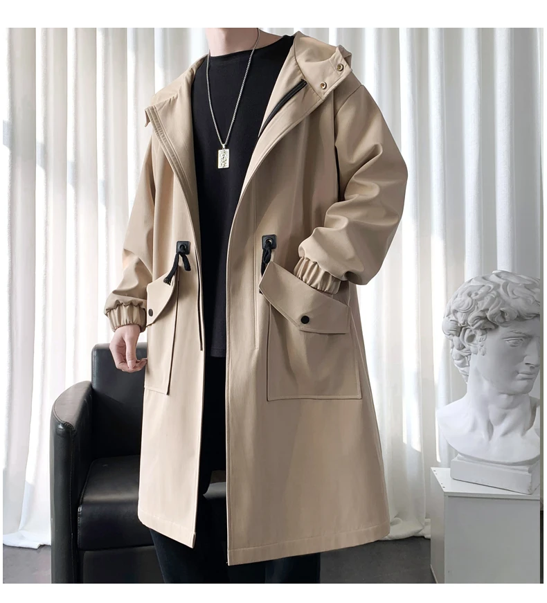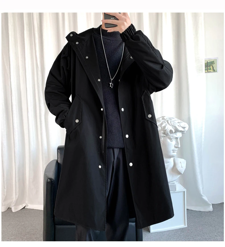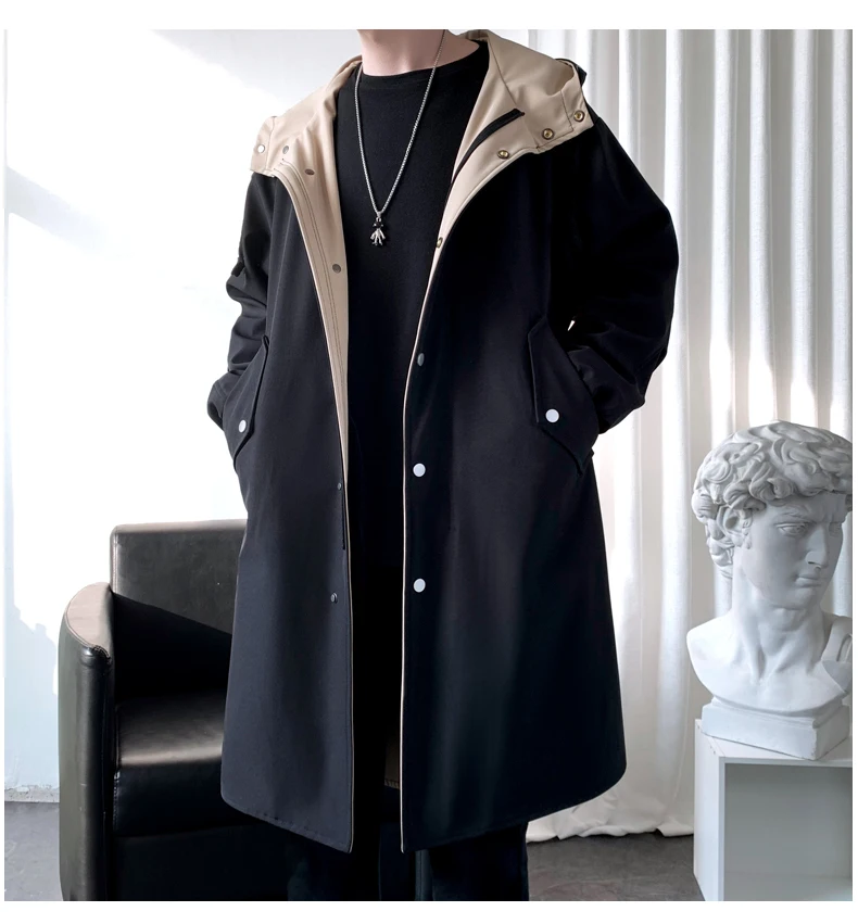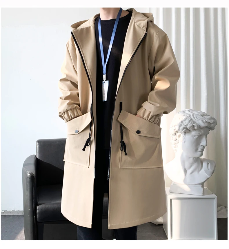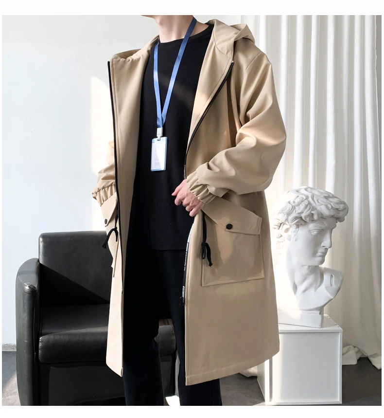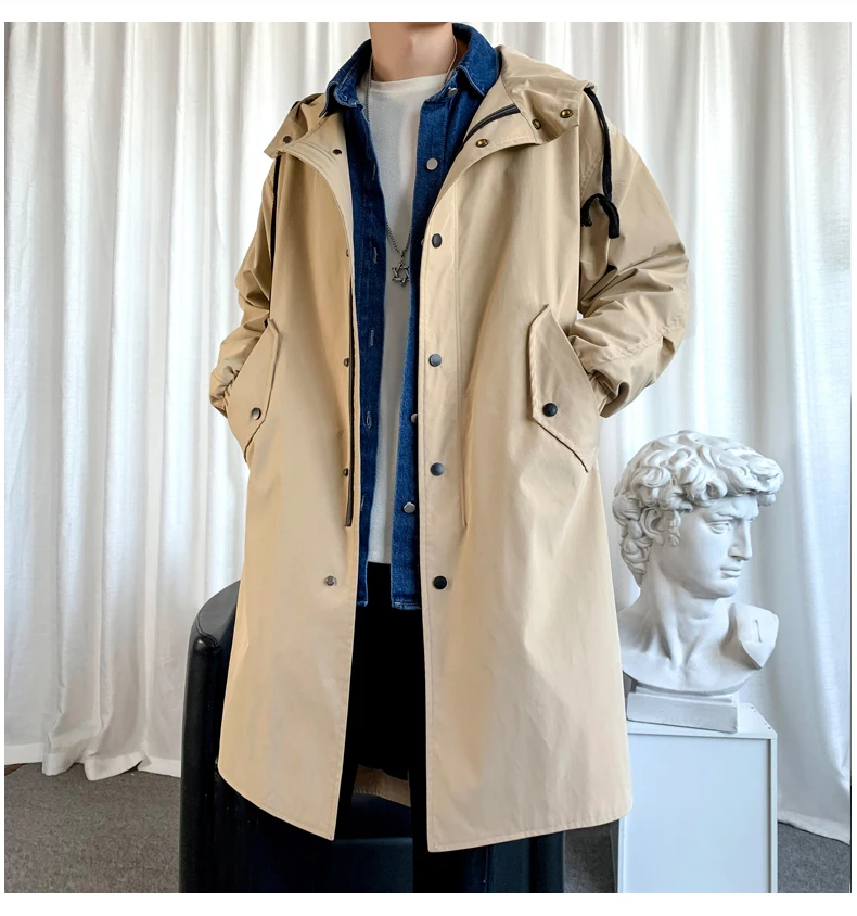 Тренчкот Legible мужской, повседневный длинный однотонный плащ, ветровка с капюшоном, s, весна-осень