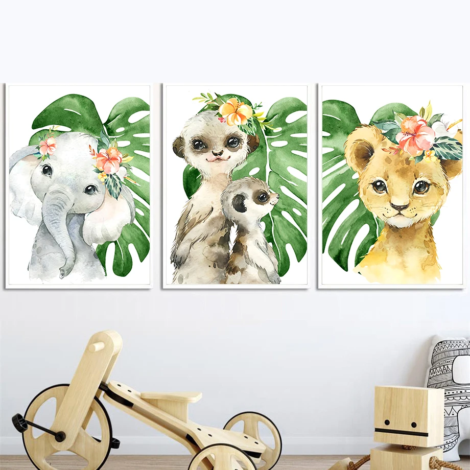 Монстера Леопард слон Ленивец джунгли животные скандинавские плакаты и принты Настенная картина на холсте настенные картины декор детской комнаты