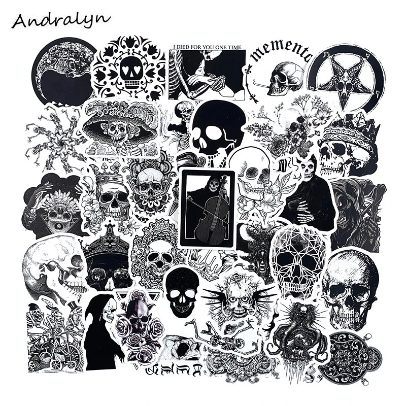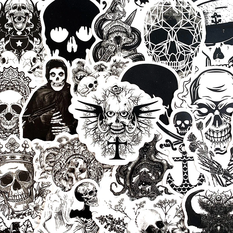 50 шт.компл. Прохладный Черный и белый череп наклейки для чехол для...