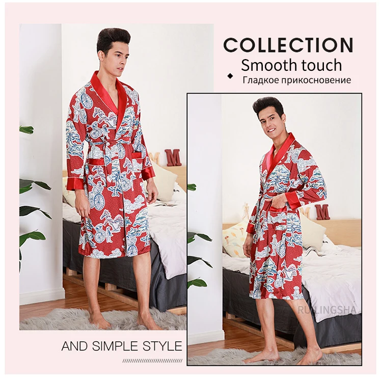 Для мужчин халат, халат атласные шелковые пижамы средней длины с дл...