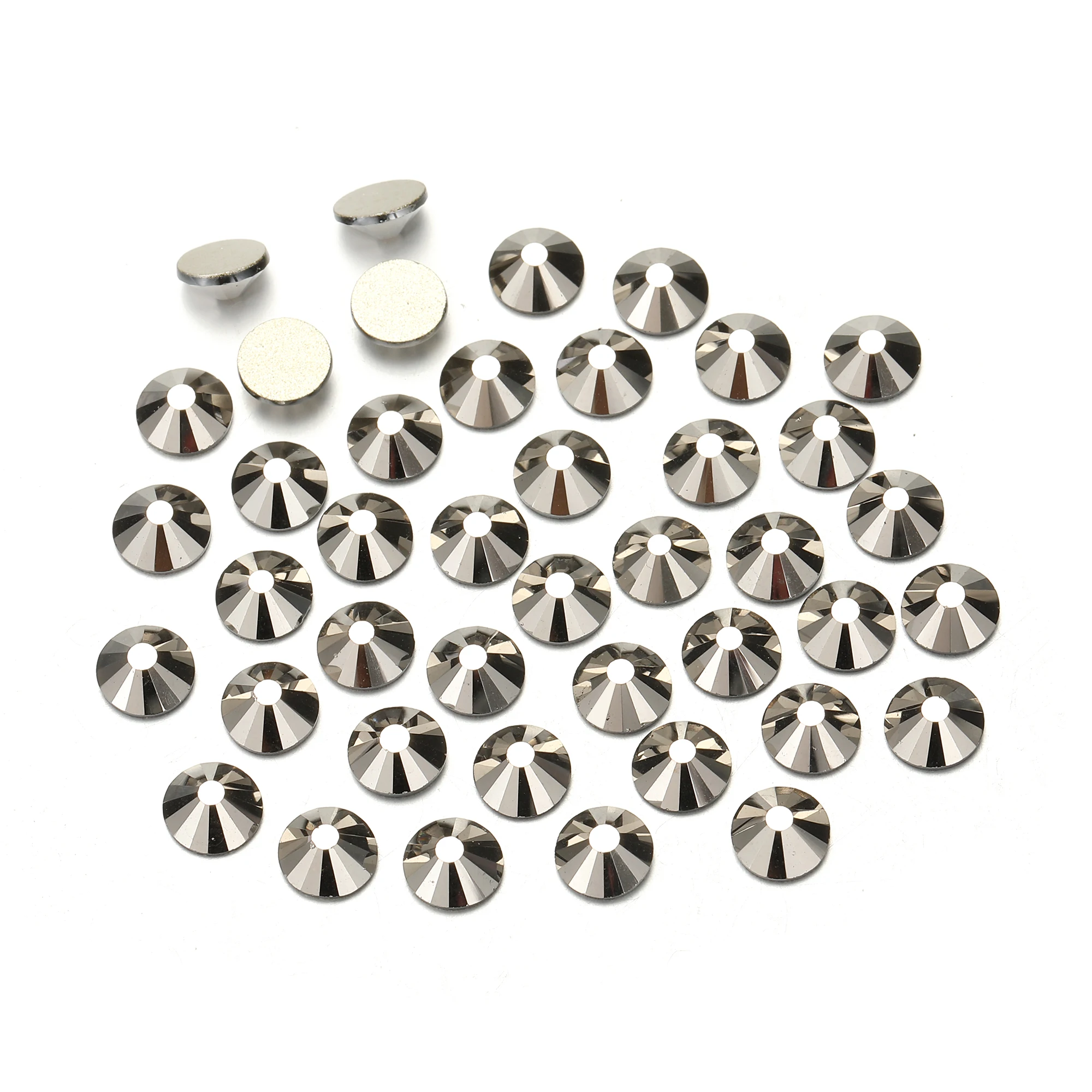Плоские задники No Hotfix (NoHF)-это неплотные кристаллические компоненты с платиновой фольгой на задней части для дополнительного блеска и защиты. Плоские задники NoHF легко наносятся на различные несущие материалы с использованием стандартных однокомпонентных или двухкомпонентных клеев. Они доступны в множестве цветов, форм и вырезов