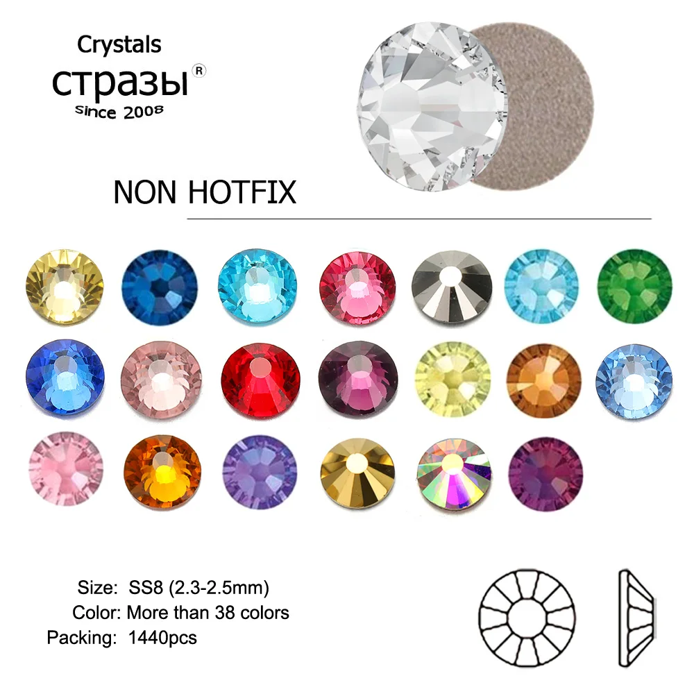 CTPA3bI SS8 все цвета без горячей фиксации стекло серебряные Стразы Flatback кристалл камни бусины для ногтей искусство ювелирные изделия